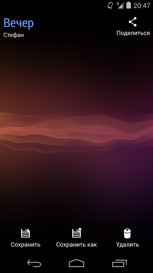 Интересные живые обои для андроид устройств от разработчика Paper World Creation в виде волновых колебаний. Скачайте и установите на экран своего смартфона один из 12 различных фонов и видов волн соответственно и наслаждайтесь переплетением красок на своем устройстве.