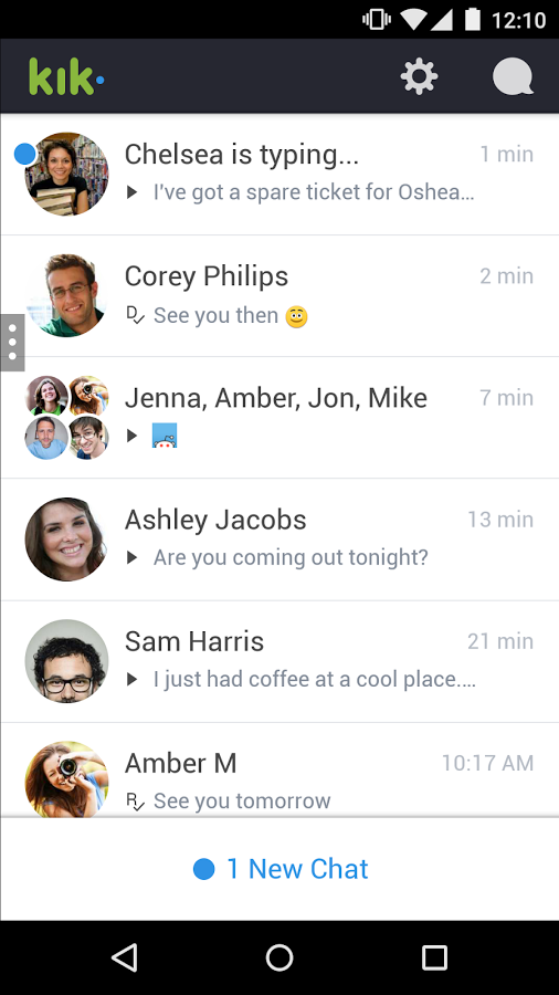 Какими бы ни были ваши интересы – игры, музыка, слухи о светской жизни или просто разговор с друзьями – в Kik вы всегда найдете компанию!