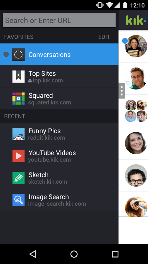 - Больше, чем разговор. Найдите игры, музыку, новости о знаменитостях и многое другое и поделитесь с друзьями. Для этого не нужно выходить из Kik!