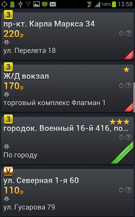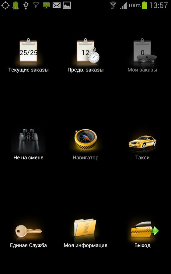 - полностью автоматизированная система работы с заказами taxi позволяет водителю в режиме реального времени видеть все поступающие в систему заказы. Для взятия заказа достаточного одного нажатия на кнопку;