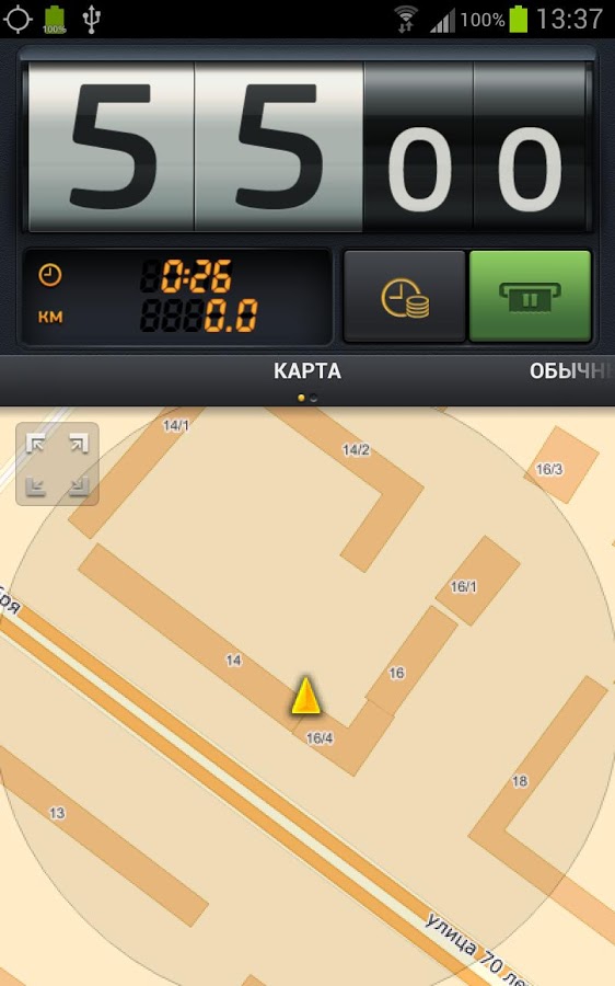 - GPS-таксометр не только считает сумму к оплате в такси по километражу, но и автоматически учитывает простои, медленное движение в городском потоке и остановки в пробках;