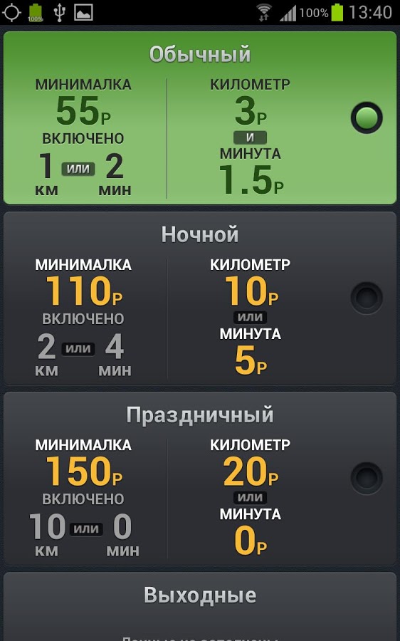 - GPS-таксометр, позволяющий водителям taxi, работающим самостоятельно, проводить настройку шести индивидуальных тарифов и использовать их в своей работе;