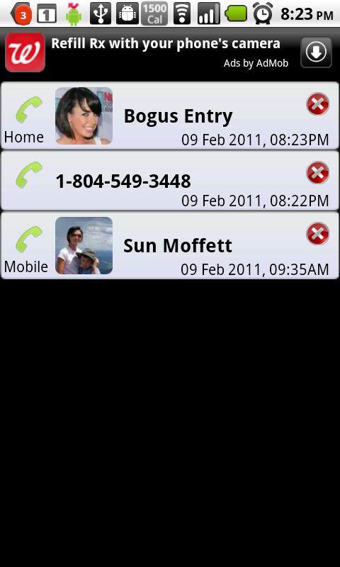 Вывод пропущенных вызовов в виде виджетов.