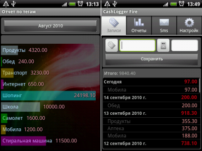 CashLogger FIRE — это простая программа для учета расходов на Android-смартфоне. Вы сможете легко и быстро, практически на ходу, внести свои затраты, а затем проанализировать куда и сколько денег у вас уходит. Поддерживается быстрое добавление записей при помощи тегов. Можно просматривать графические отчеты за месяц по типам расходов и по неделям.