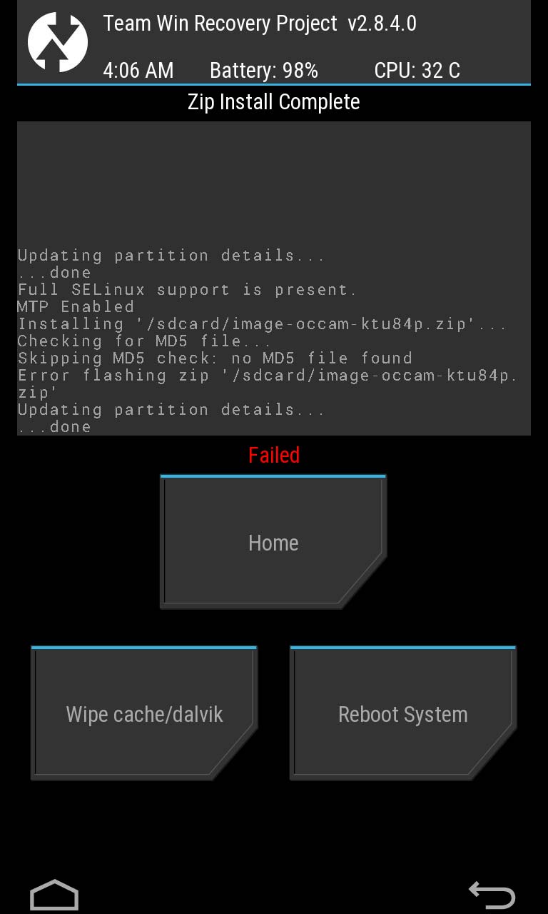 Здравствуйте, на моем Nexus 4 пятый андроид выдает странные глюки, иногда зависает так что телефон перезагружается, притормаживает и вообще не нравится. Обновление пришло по воздуху, телефон ранее не рутился и ничего с ним не делалось. Поэтому хочу вернуться на android 4.4.4 в котором таких глюков не было.