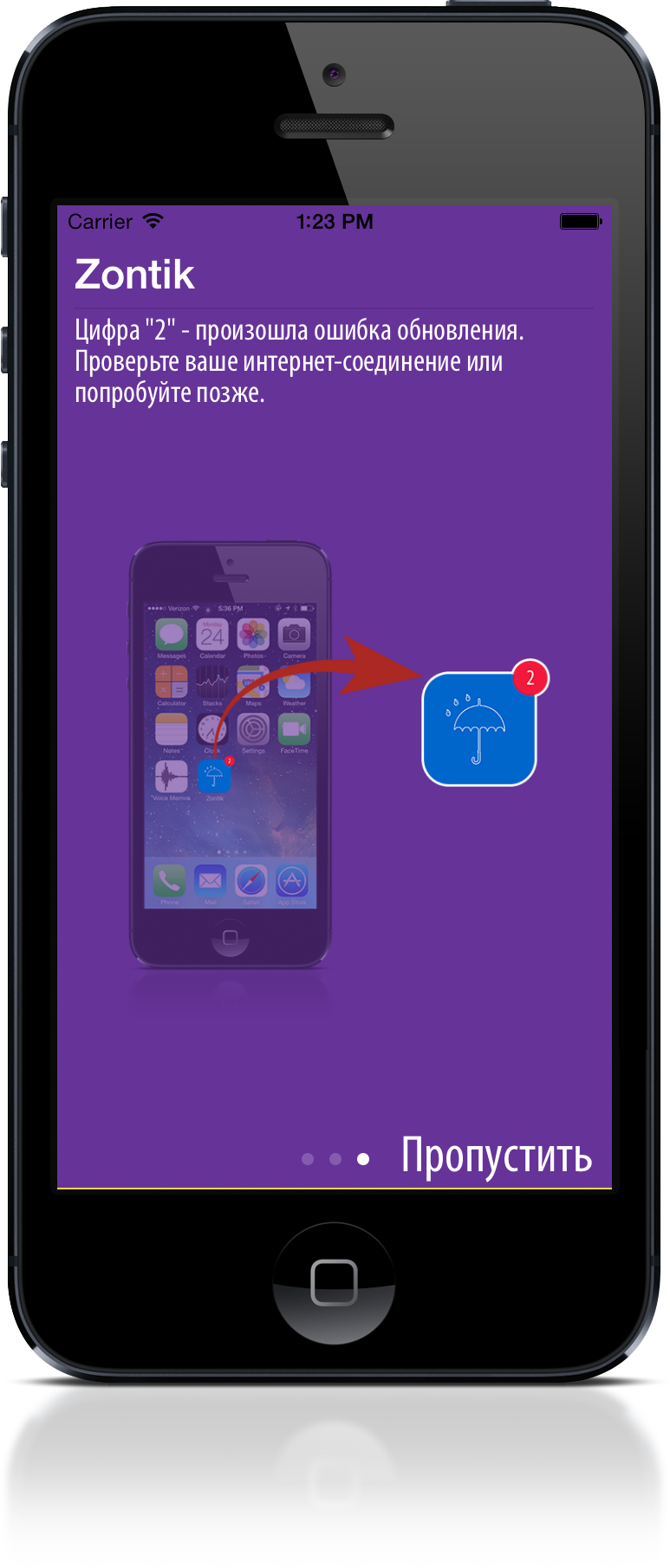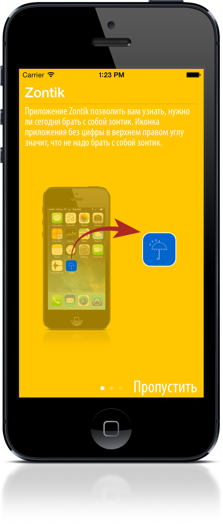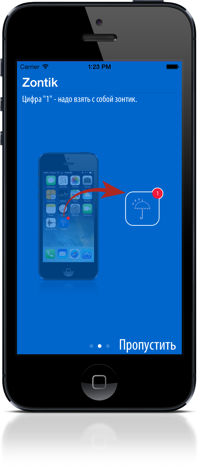 Если иконка приложения содержит цифру "1", значит будет дождь и надо взять с собой зонтик. Если иконка без цифры, значит будет солнечная погода и зонтик не пригодится.