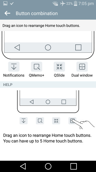 Помимо трех стандартных навигационных кнопок Вы можете добавить еще несколько, включая Двойное окно, QSlide, QMemo+ и даже панель уведомлений. Всего на экране будет отображать 5 кнопок из 7 доступных.
