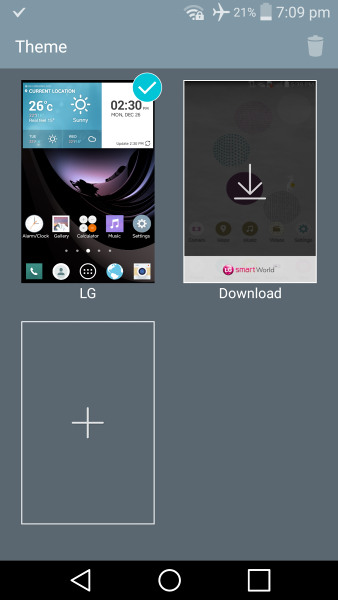 На рабочем столе Вы сможете настроить как различные эффекты, так и менять темы. Вместе с темой изменятся обои рабочего стола, системные значки и шрифты. В смартфоне есть только одна установленная тема, другие Вы сможете скачать с LG Smart World.