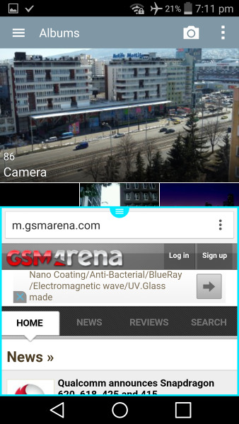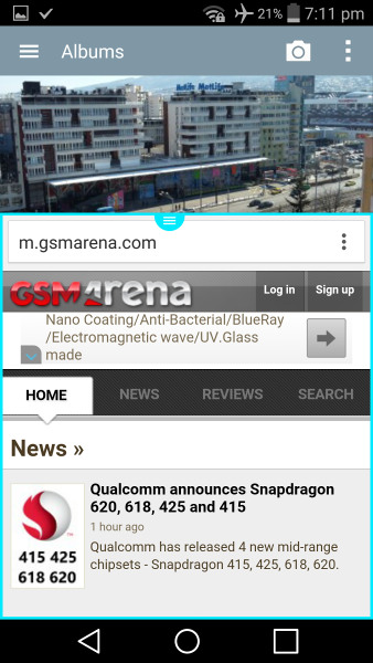 Кроме двойного окна, многие приложения имеют возможность работать в режиме небольших плавающих окон, которые LG назвала QSlide.