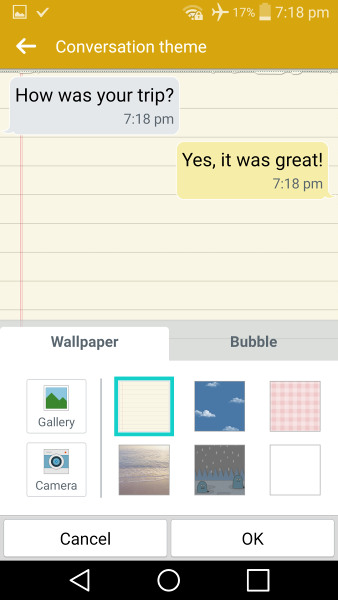 Также LG позволяет настроить внешний вид приложения обмена сообщениями путем изменения фона.