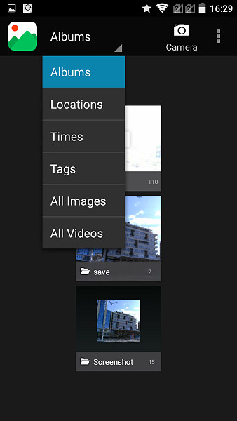 Запустив приложение Вы попадаете в плиточный интерфейс различных альбомов. Изображения можно рассортировать по множеству критериев. Место, время и даже пользовательские отметки могут быть использованы для рассортировки изображений, также Вы можете и вовсе разместить все снимки в одном длинном списке. Приложение также обрабатывает видео, но убирает его из поля зрения по умолчанию.