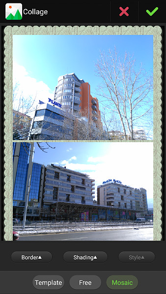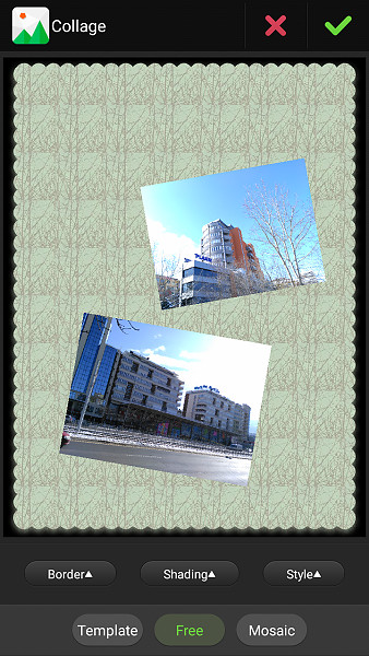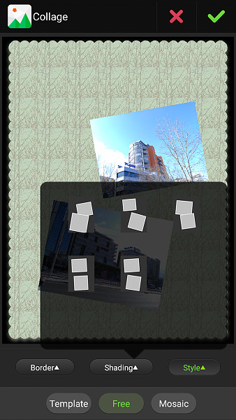 Приложение несет в себе две интересные функции. Первая – это создание коллажей. По всему полю Вы сможете размещать изображений в любом месте или с помощью предложенных шаблонов.