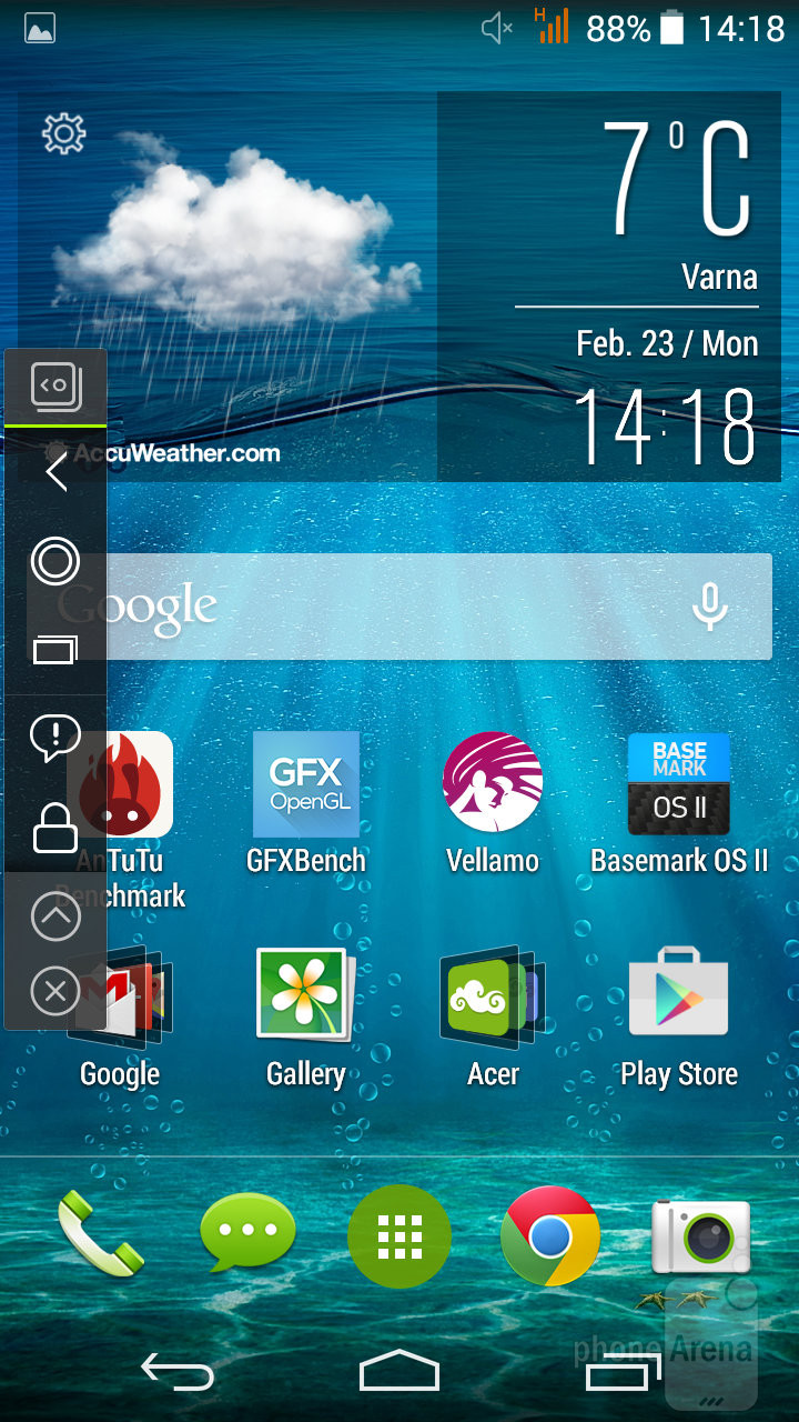 Acer Liquid Jade S работает на базе Android 4.4.4 KitKat. Это, конечно, не самая новая версия ОС, но в настоящее время она является приемлемой. В дополнение Acer оснастила смартфон своим пользовательским интерфесом. Лаунчер довольно удобный – он простой и имеет много полезных виджетов, а океанические обои по умолчанию соответствуют названию устройства.
