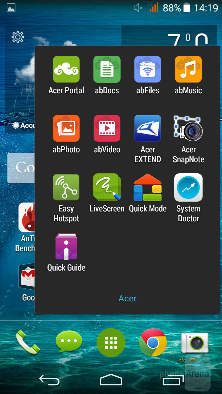 Стоковый браузер Google Chrome знаком каждому, хотя по умолчанию кроме него Acer предлагает использовать еще один браузер. В любом случае смартфон обеспечит Вам комфортный веб-серфинг, навигация и масштабирование достаточно быстрые.