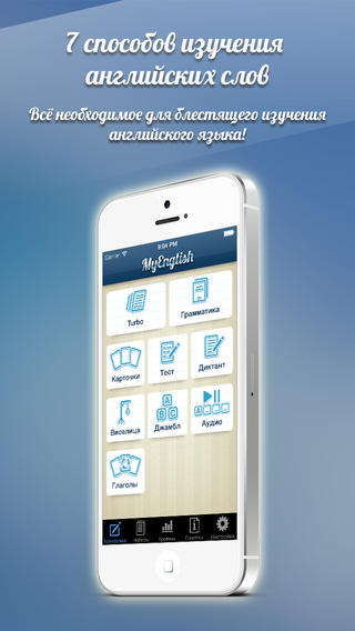 Изучение английского кажется Вам тяжелым? Не расстраивайтесь. Мы верим, что английский можно изучать с легкостью.И все свои идеи мы постарались реализовать в приложении MyEnglish. Это уникальная в своем роде программа для изучения английского языка. Достаточно всего 15 минут в день, и через месяц Вы окажетесь на совершенно новом уровне английского языка.