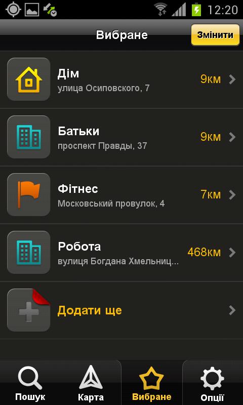 - сохранение адресов в Избранном, быстрое построение маршрутов до них;