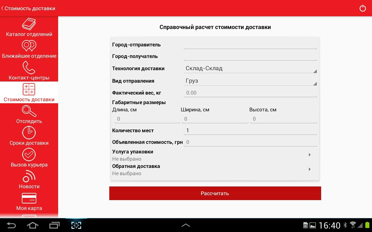 - просчет стоимости и сроков доставки;