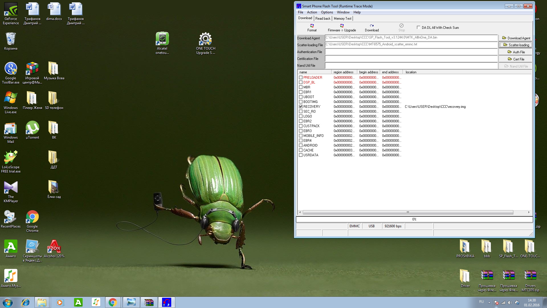тебе scatter-файл нужно выбрать из папки recovery!, а не из папки с прошивкой, ссылку на архив я тебе дал, галочка будет стоять только на против recovery, никаких других галочек ставить ненужно!