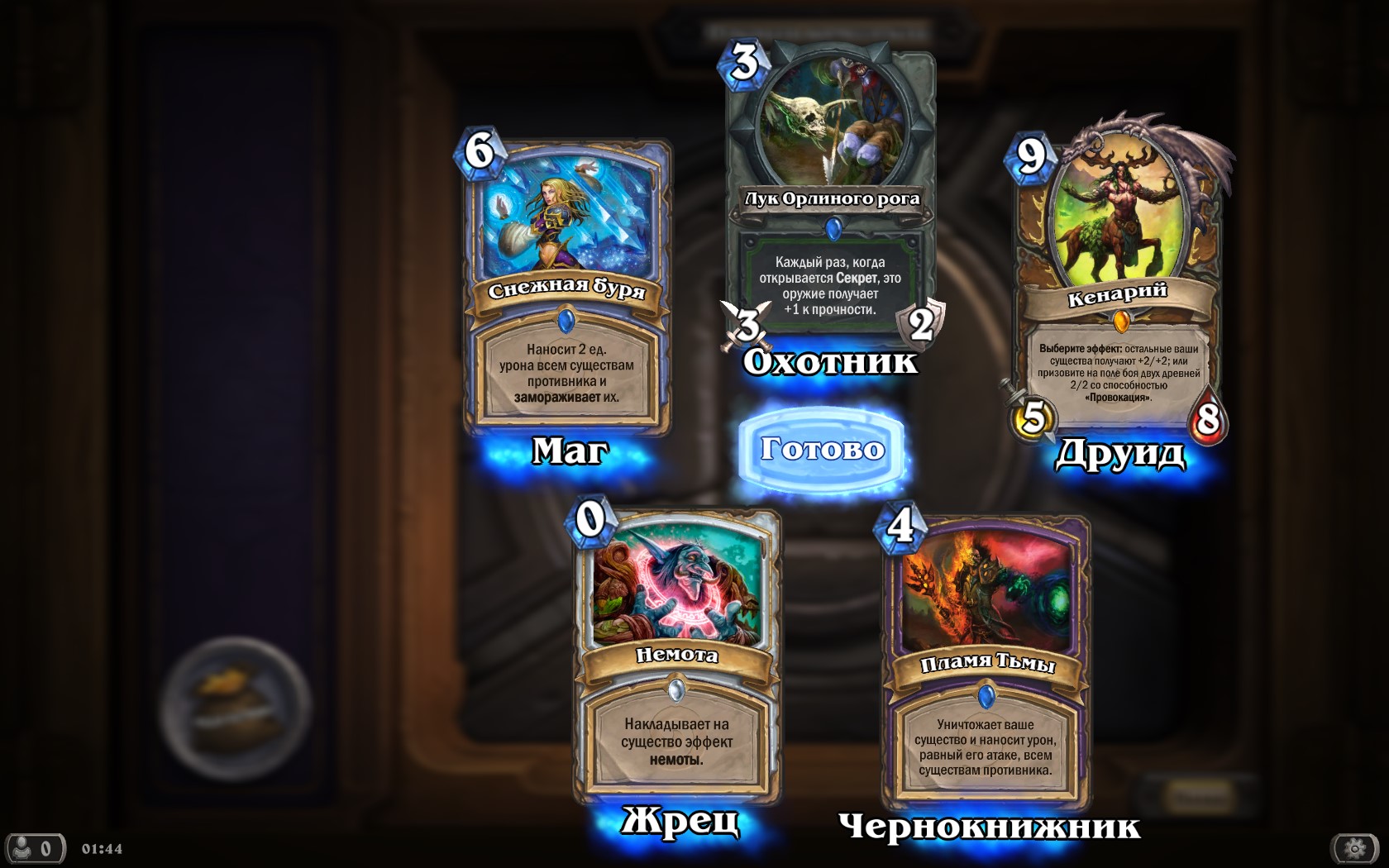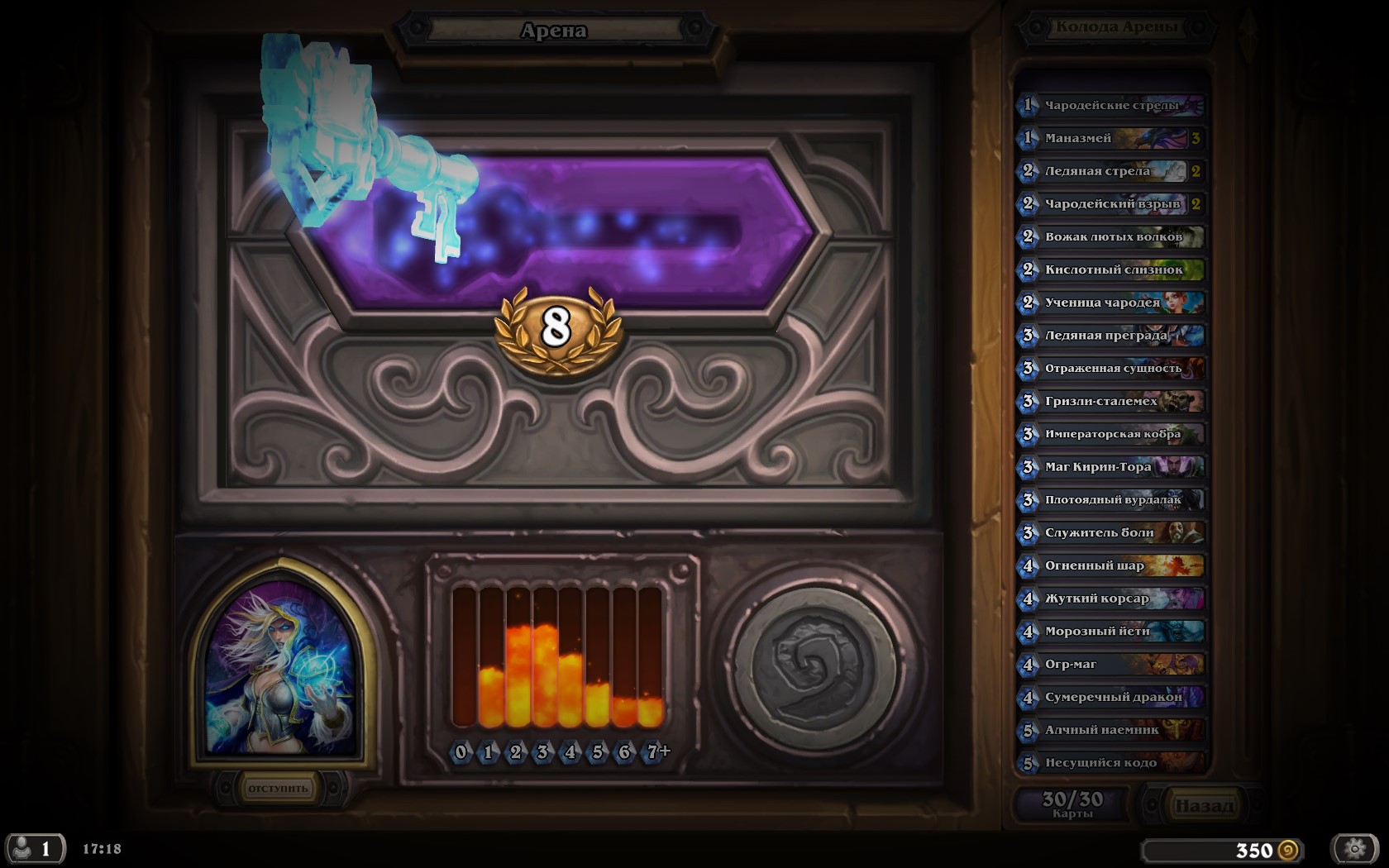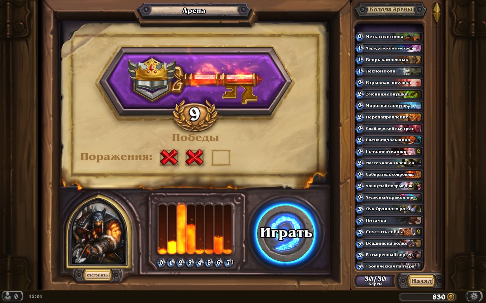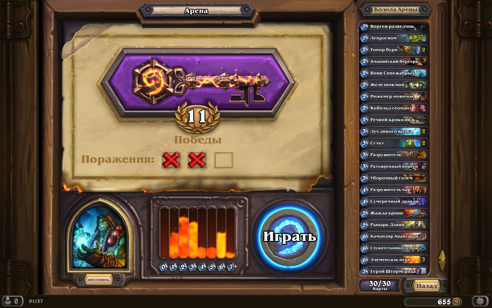 Йуууууухуху, не знаю как у всех а у меня чем больше побед на арене тем круче карты в паке первая золотая легенда