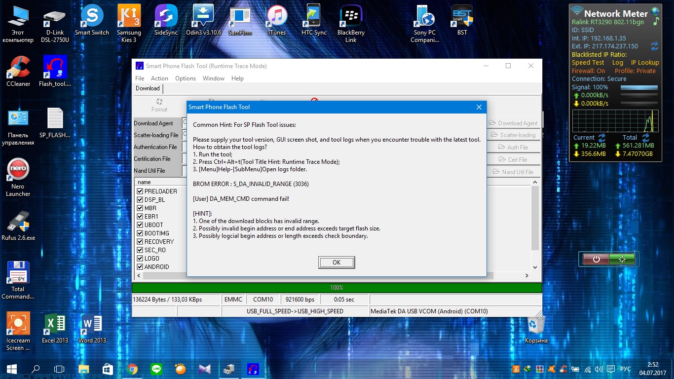 исправил ! надо было просто форматнуть девайс а потом сделать давнлоад ! так как РМТ файл в девайсе не совпадал с скаттер файлом !!! всем спасибо !