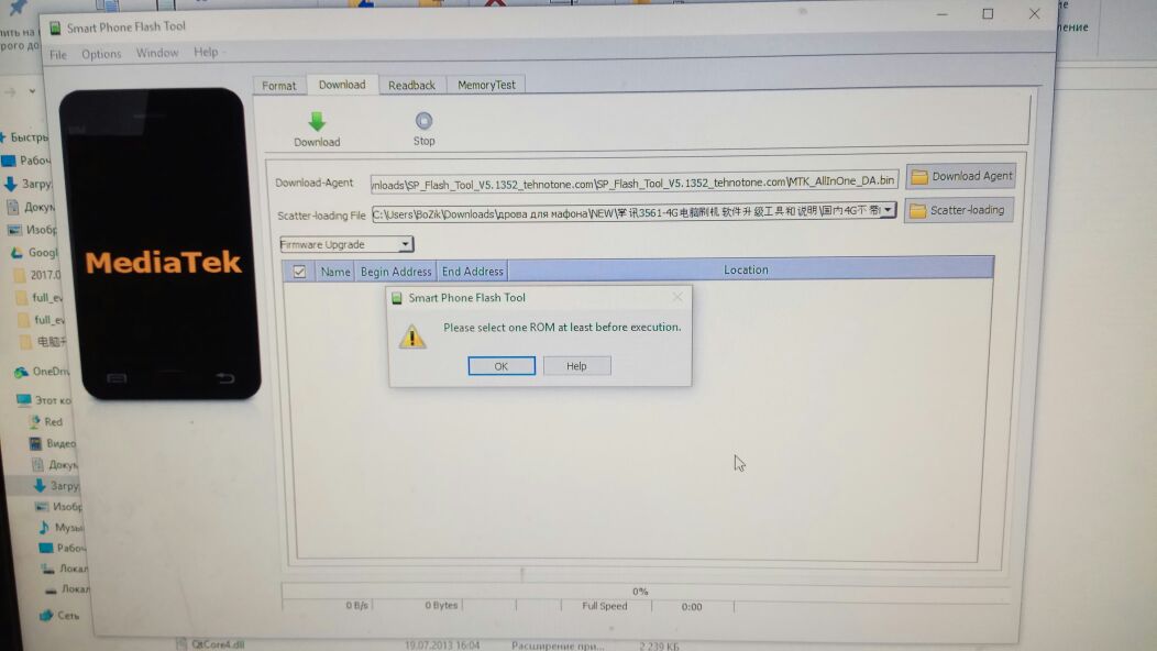если в папке с прошивкой нет файлов boot.img, recovery.img, system.img и т.д., а есть грубо говоря scatter и две подпапки - это прошивка для стокового рекавери, а не для SP Flash Tool