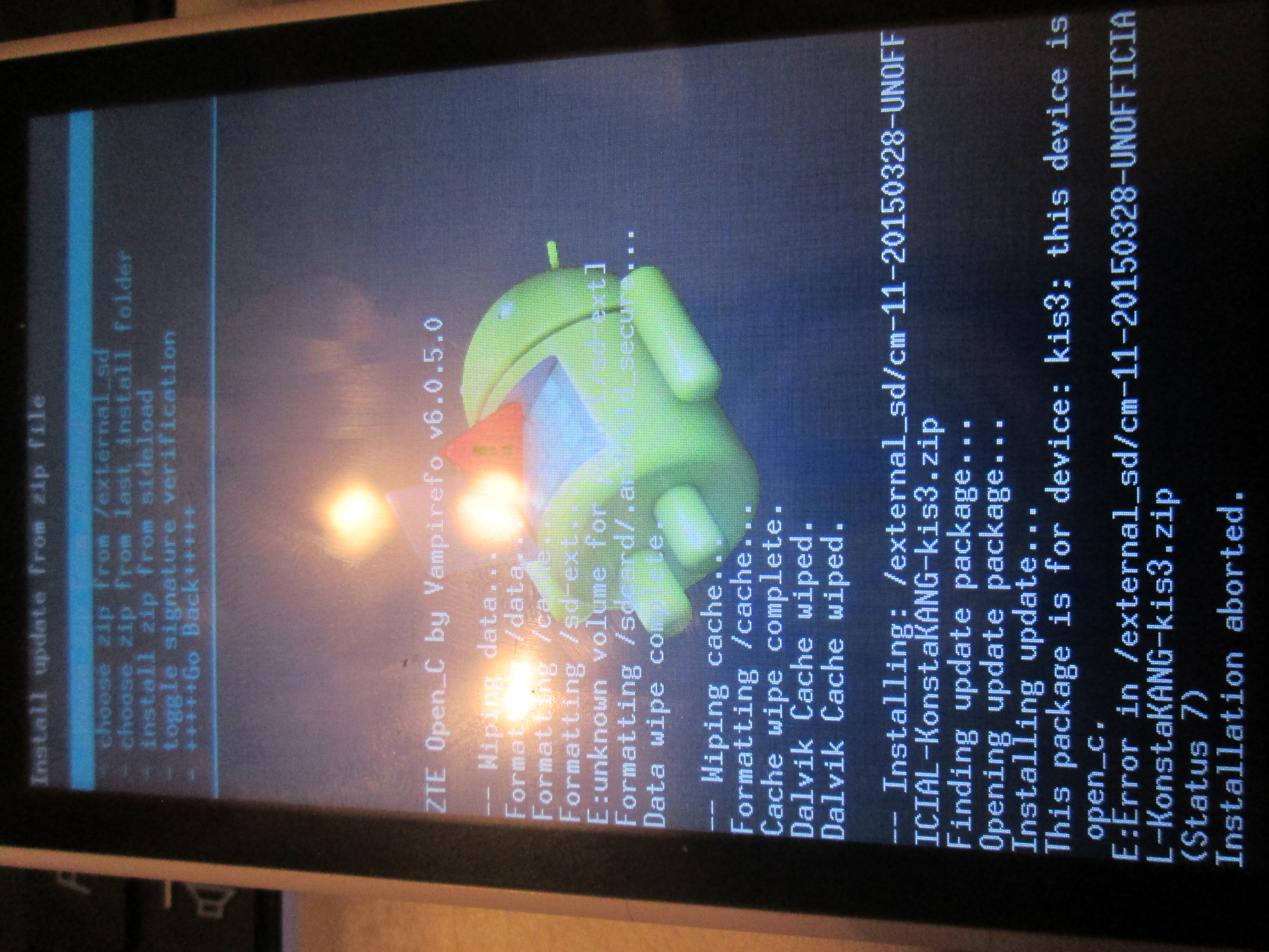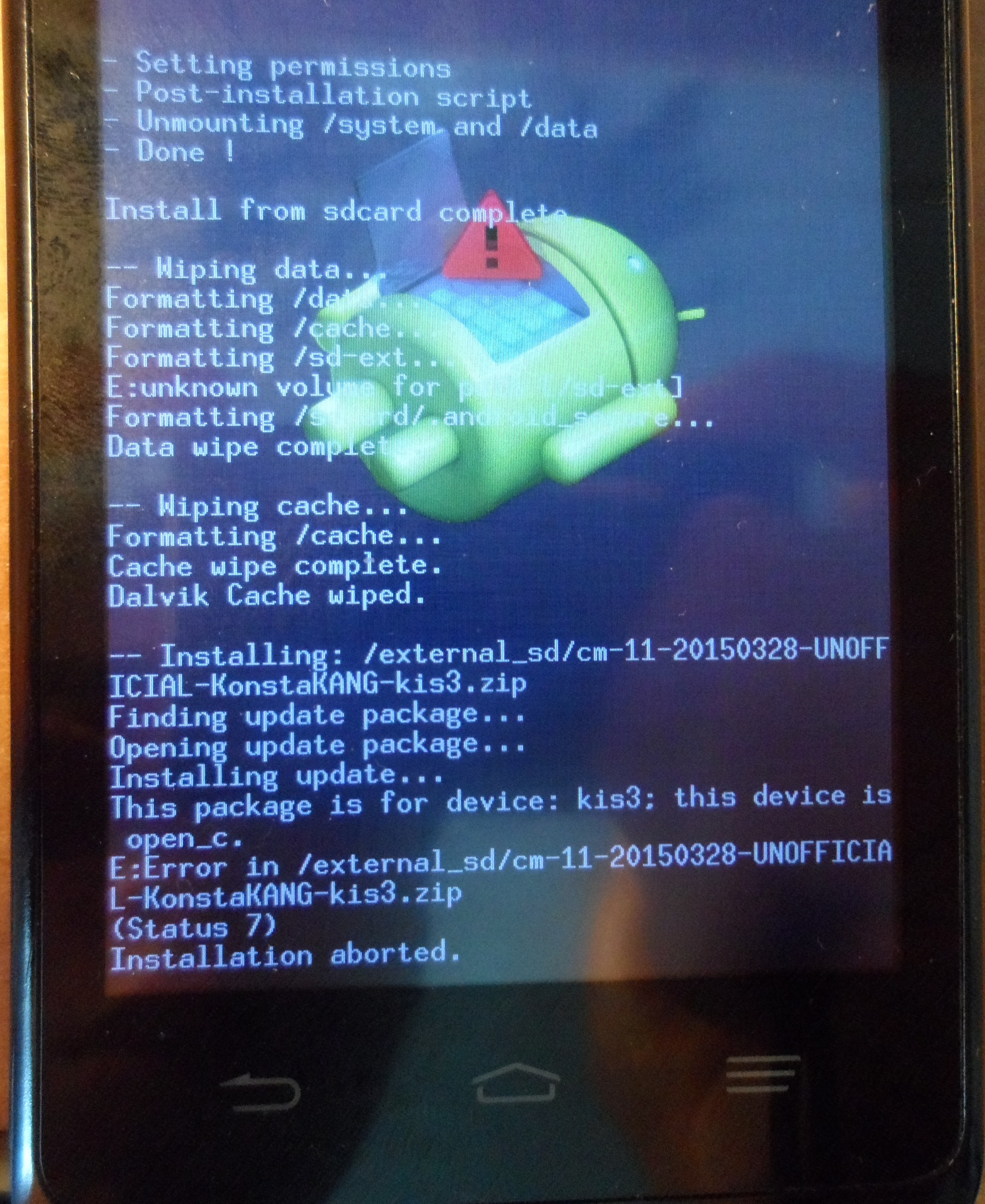 В: Не устанавливается прошивка, CWM выдает ошибку (статус 7)