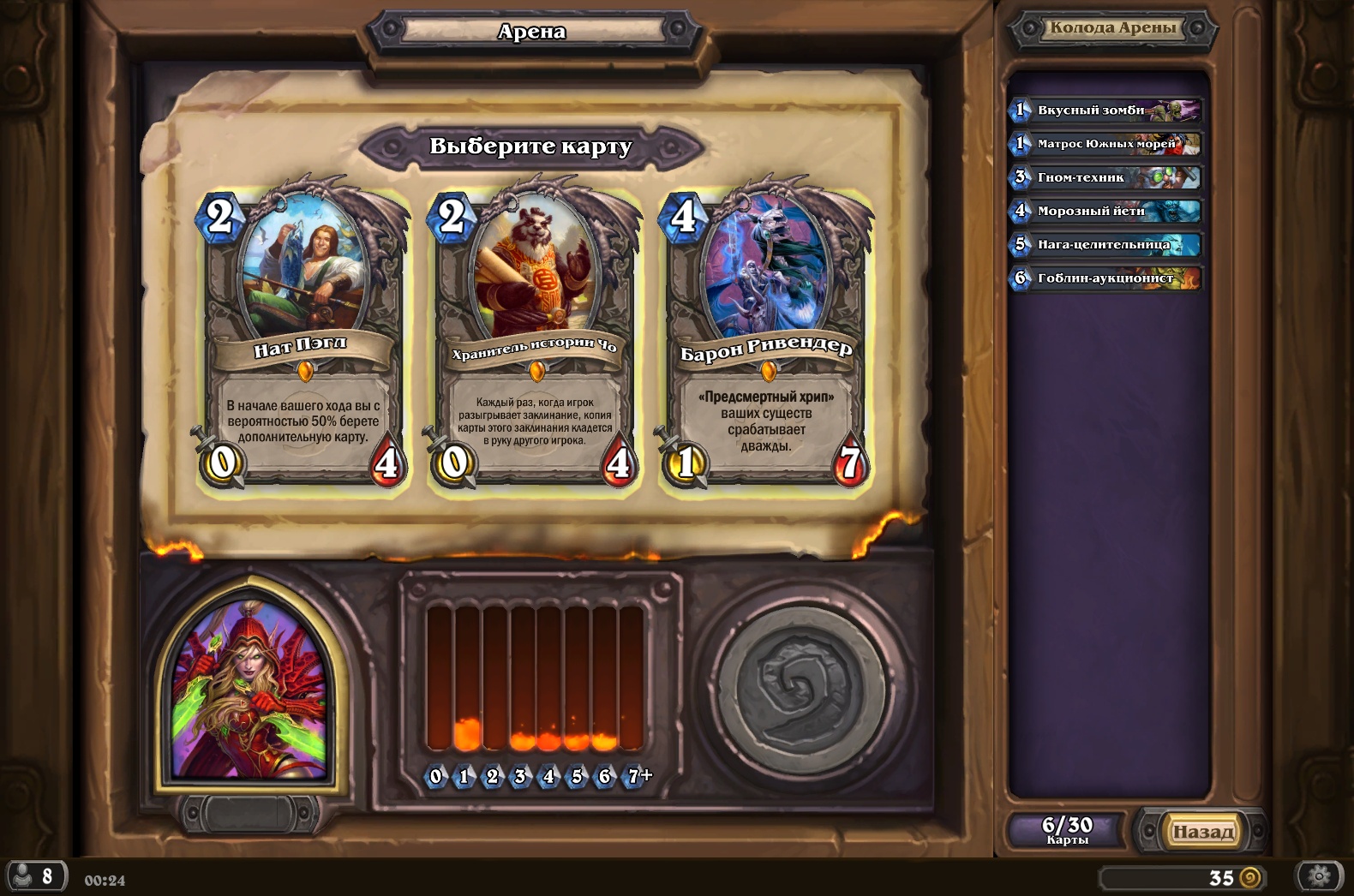Сообщение от Fish приста бери, но там от сдачи тоже зависит против зоо сейчас самое время играть варом, даже 2 потасовки в деку можно положить, в текущей мете лишним не будут хренова, что у меня карт нет на вара Варом до 8 дошел, потом ппц, онли раш в ранкеде Так что вар не спасает;(