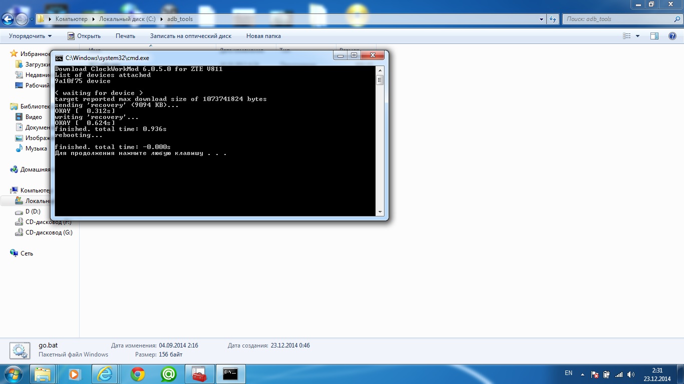 2. Далее в зависимости от того что ты хочешь прошить или единоразова запустить рекавери вводишь: fastboot boot cwm.img (для загрузки) или fastboot flash recovery cwm.img (для прошивки его)