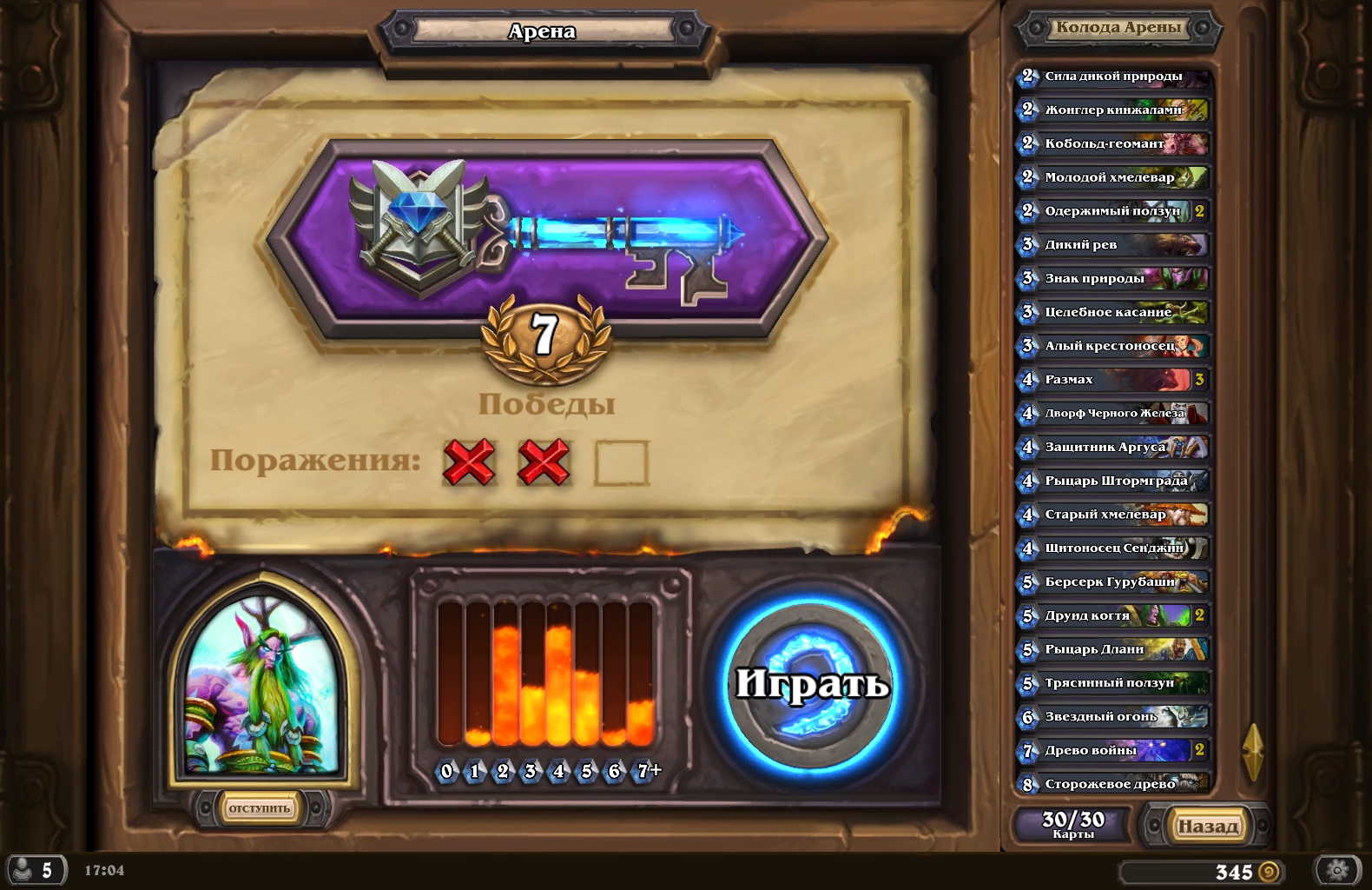 Вчера весь день почти катал аренки и заметил одно чудесное совпадение после того как играешь 5-0 6-0 появляется чудо шаман с элемами и духом предков 3 луза и досвидос кароч из 5 арен в 3 была такая шляпа