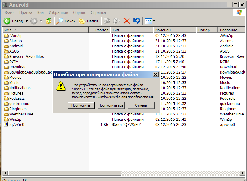 И сообщение об ошибке копирования появляется в том случае, если на планшете в настройках для разработчиков "Отладка USB" не включена.