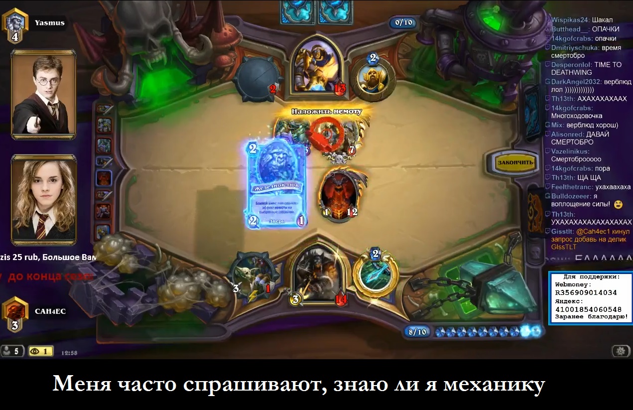 Ярый поклонник хила, брони и пеньков, а также создатель уникальных колод на комбо из магмовых яростней и чокнутых подрывников!