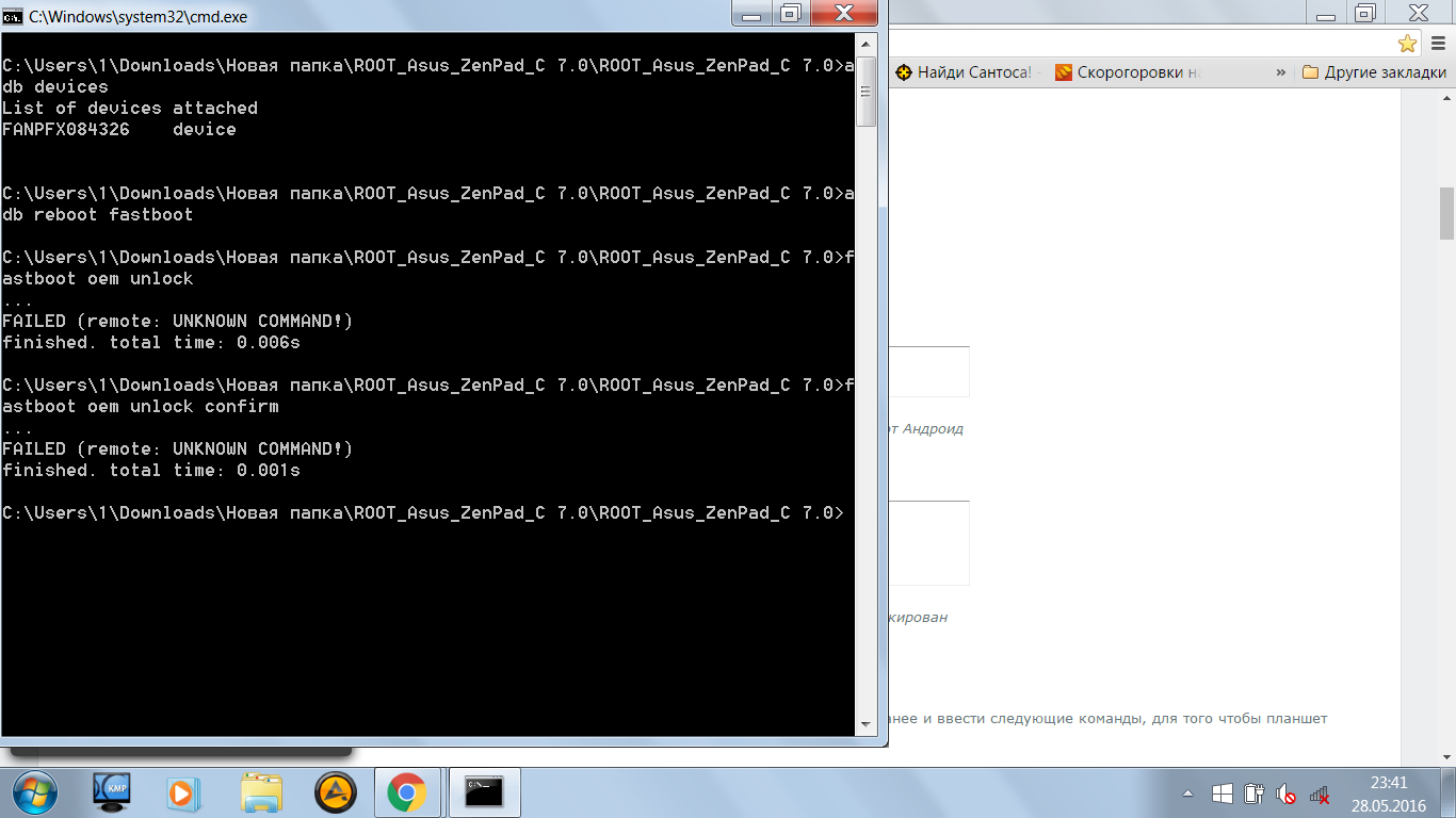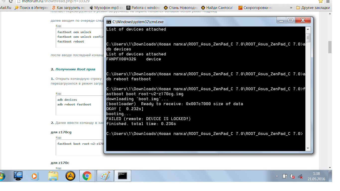 Затем зажимаем кнопку увеличения громкости и втыкаем кабель, далее по инструкции разблокируем загрузчик.