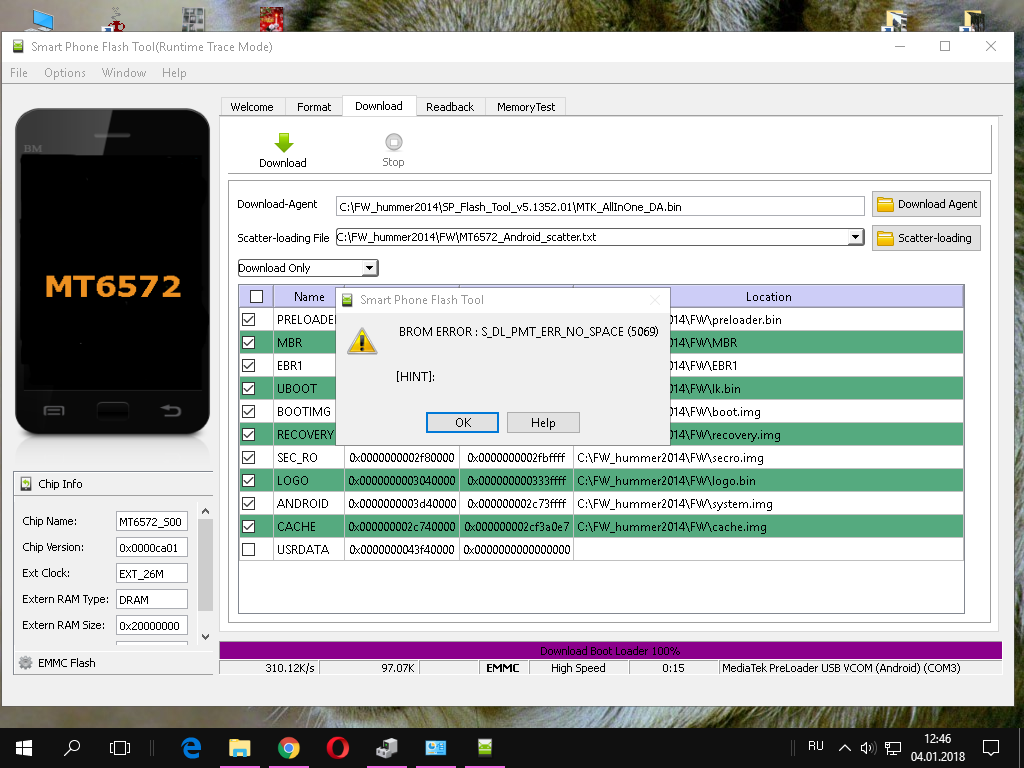 Можно сделать Manual Format - дает, но в пределах UA Size. После этого попытка залить любой раздел снова заканчивается ошибкой 5069.