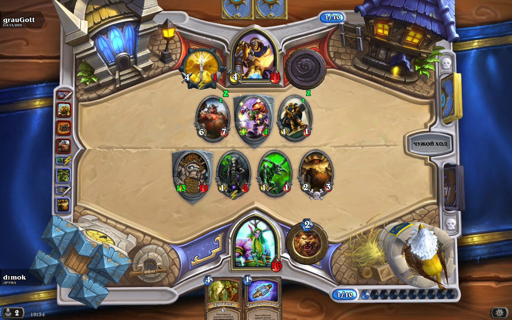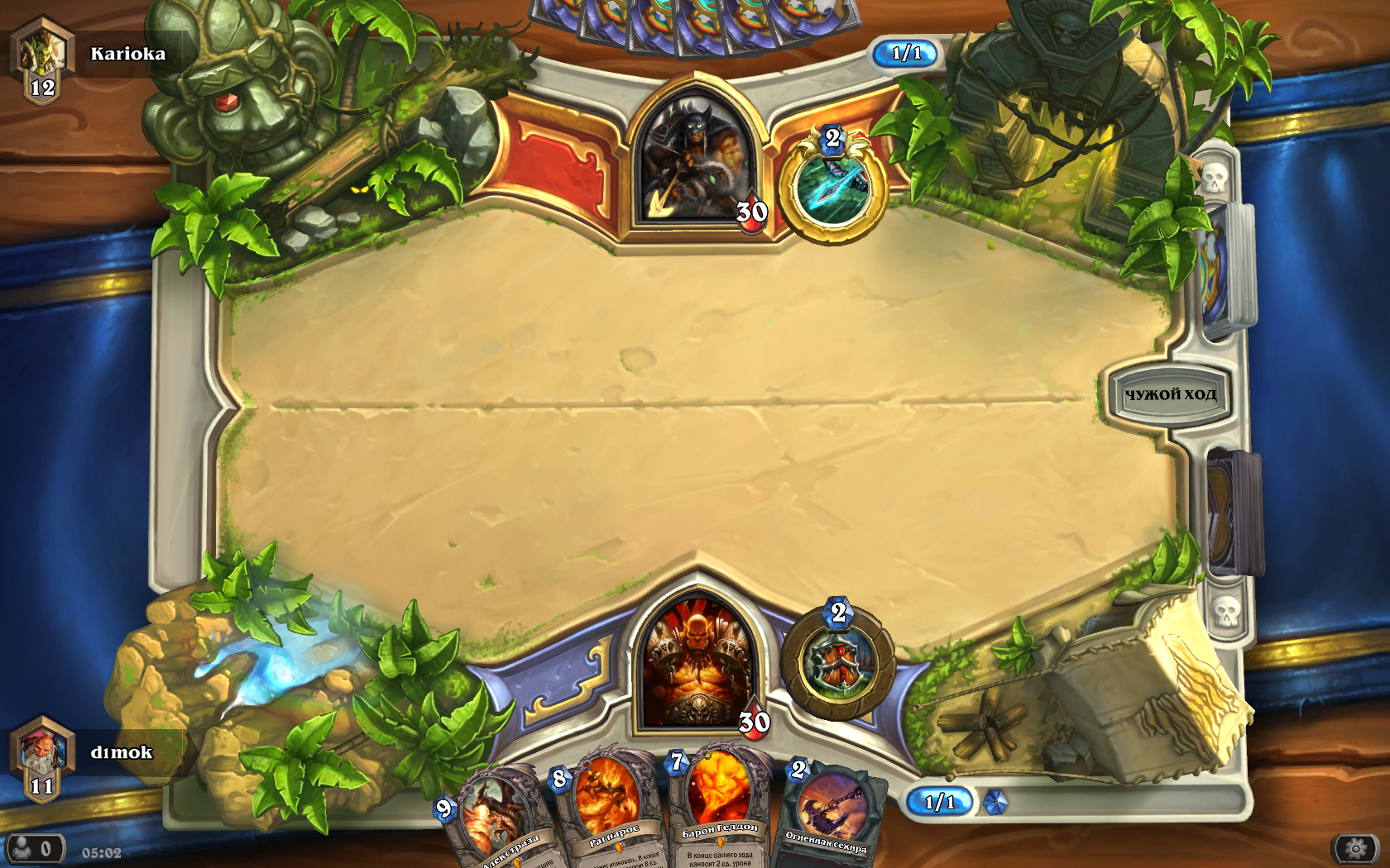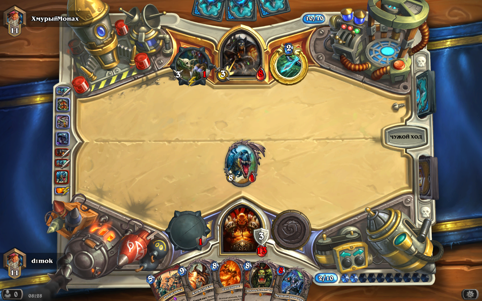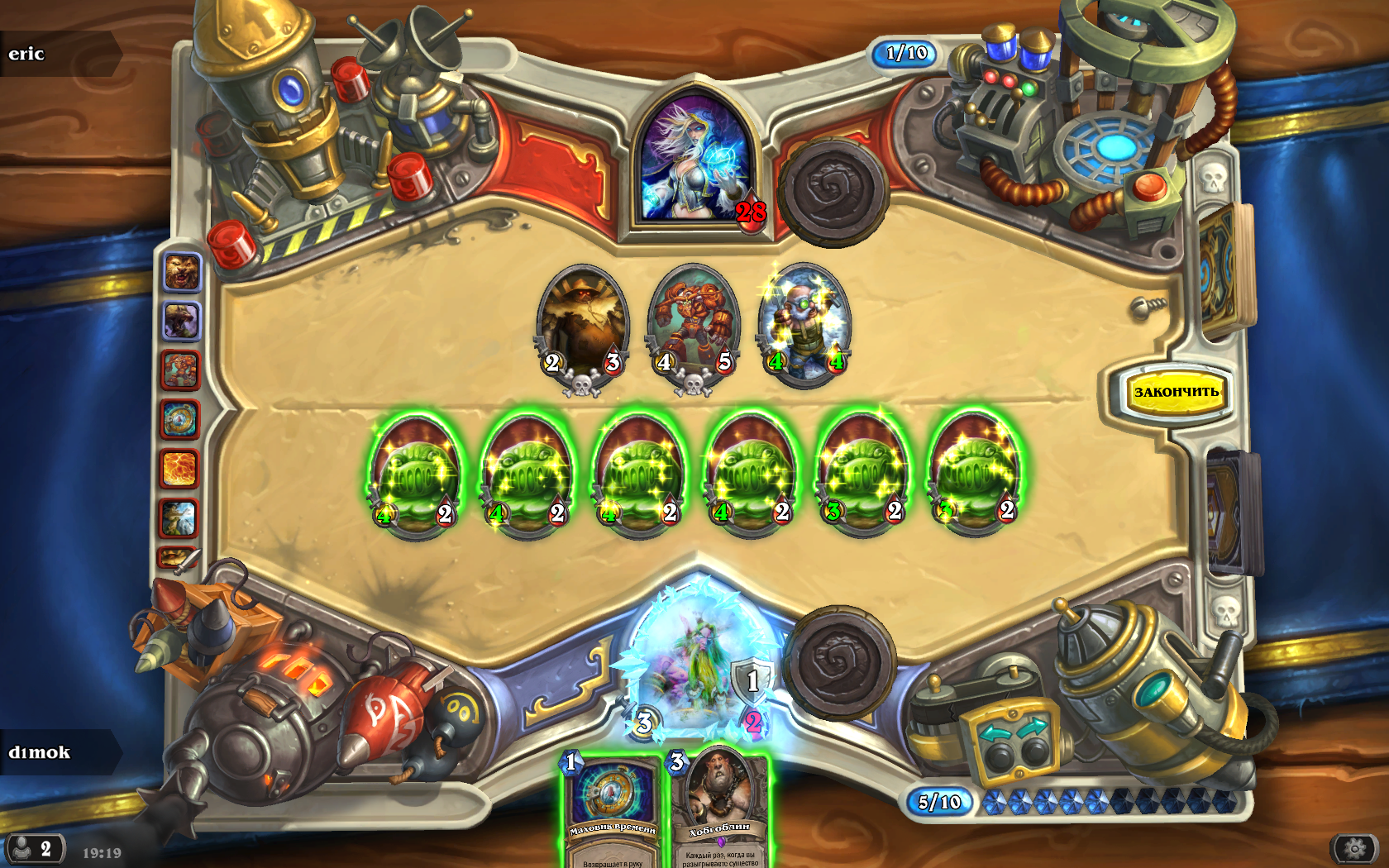 на столе громмаш и алекса у него в руке клирик удар на 2 и еще +2 и карту