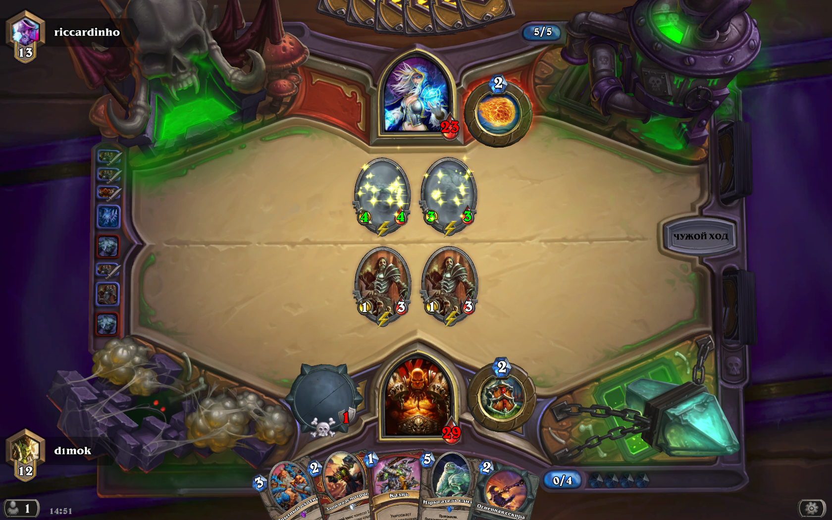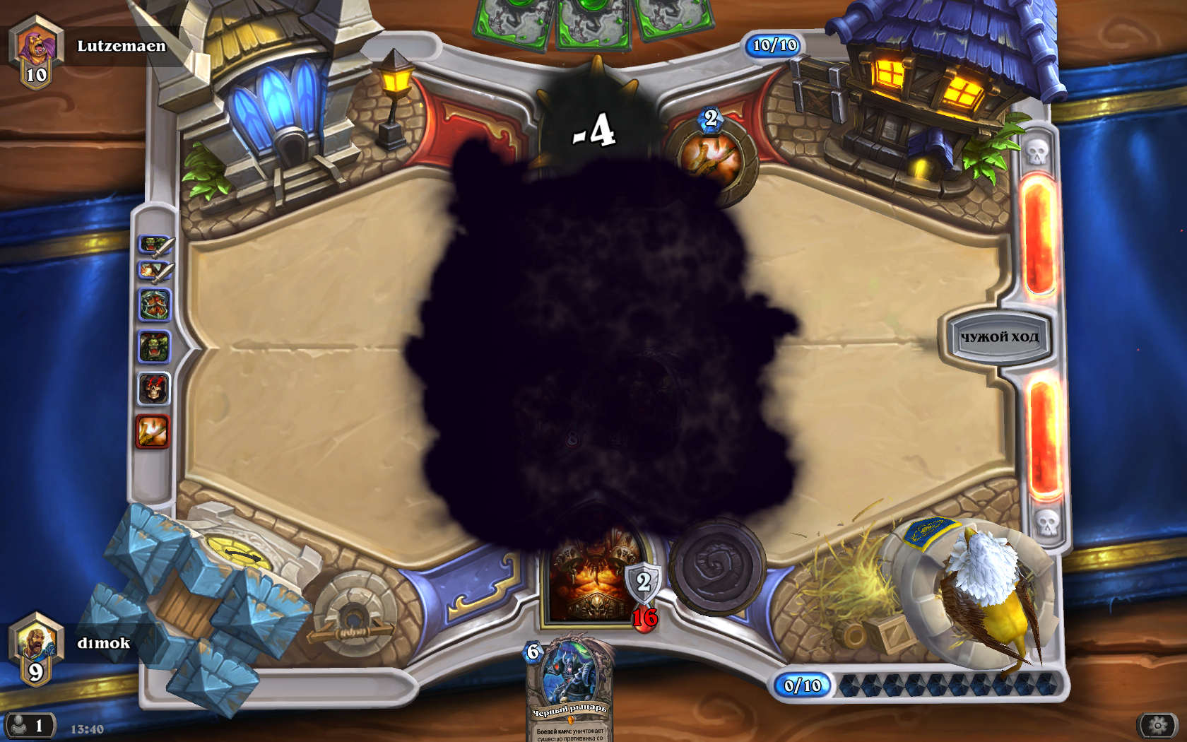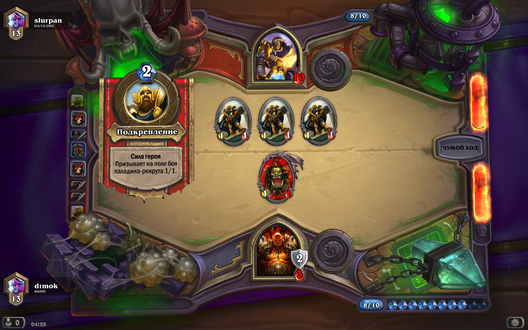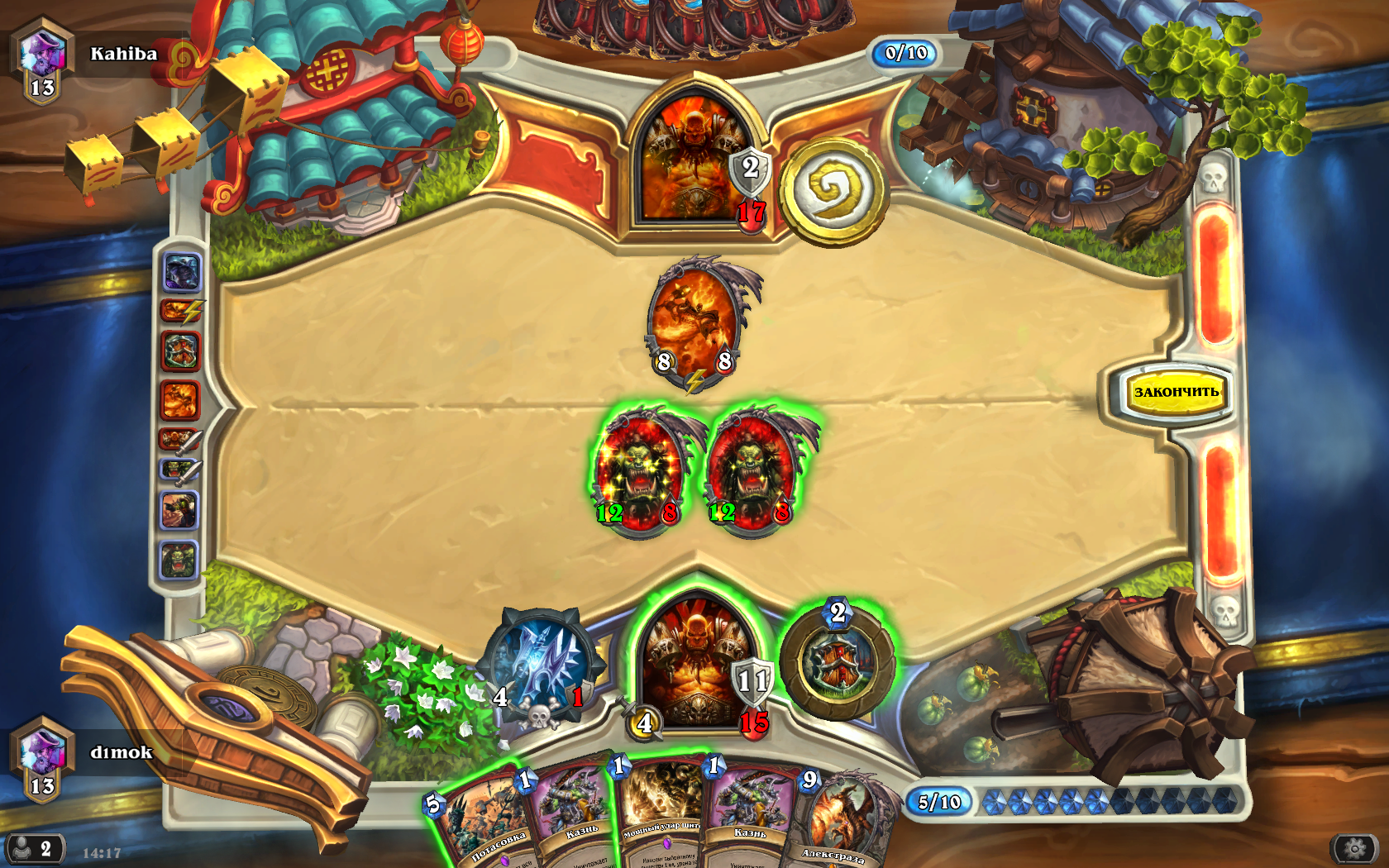 на столе громмаш и алекса у него в руке клирик удар на 2 и еще +2 и карту