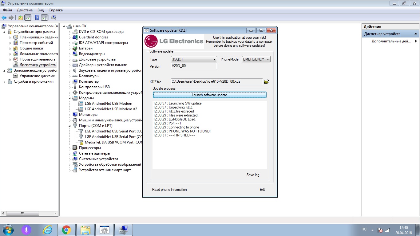 а как ты его с помощью kdz_updater тогда прошивал? если он у тебя в никакой режим не входит?