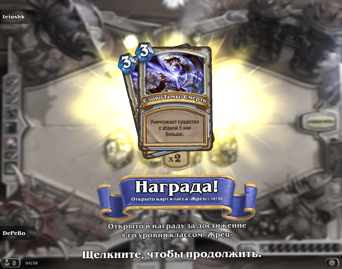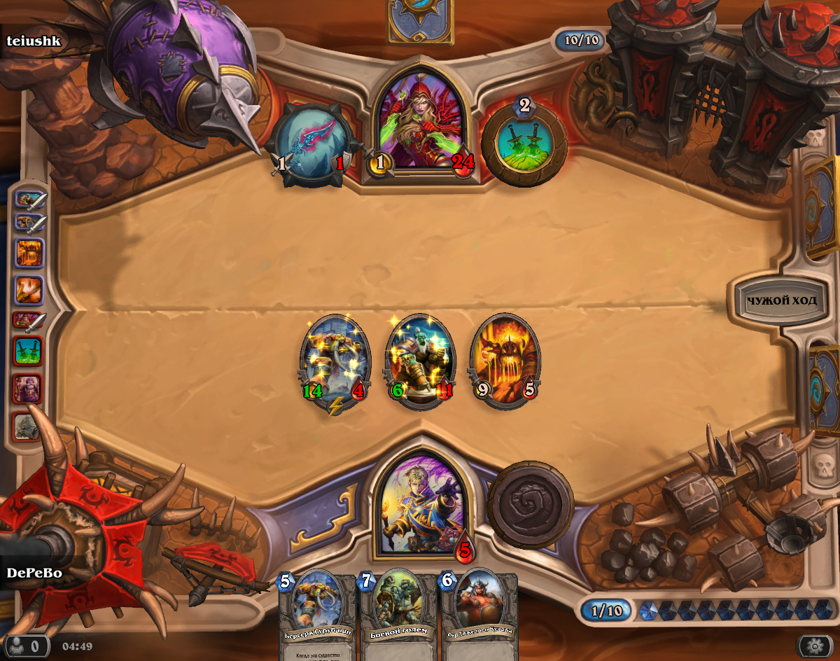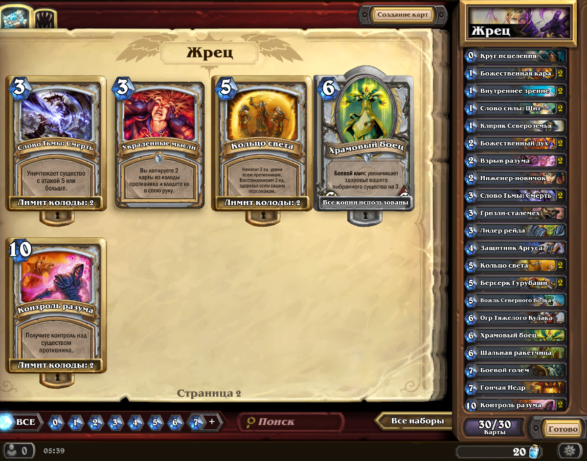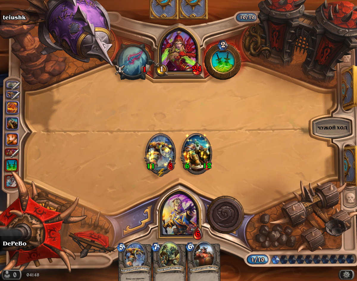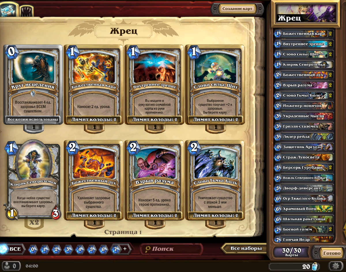 Осваиваю приста)) т.к. дали задание одержать 2 победы жрецом или чернокнижником. Нанёс за 1 ход в первой же игре 21 урон. p.s. прикольно им играть.