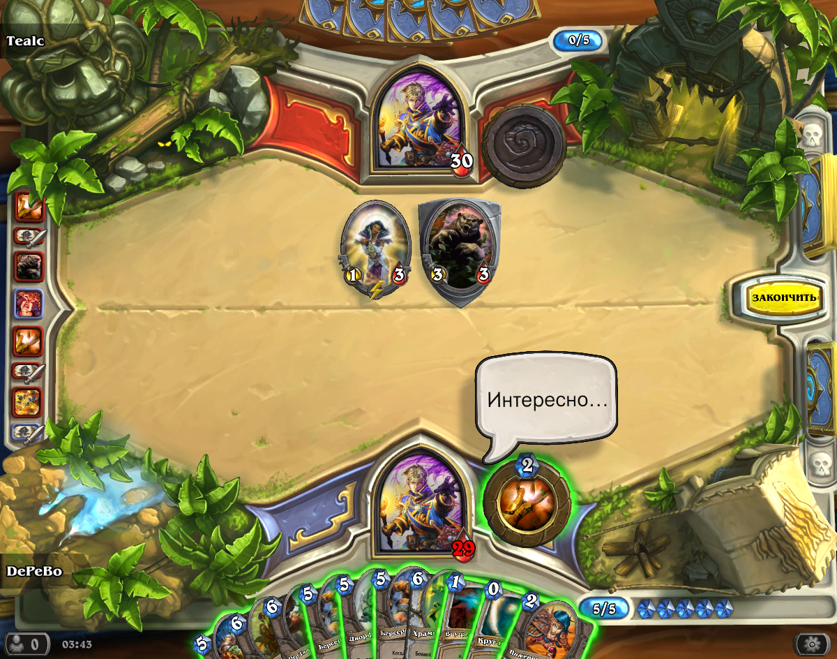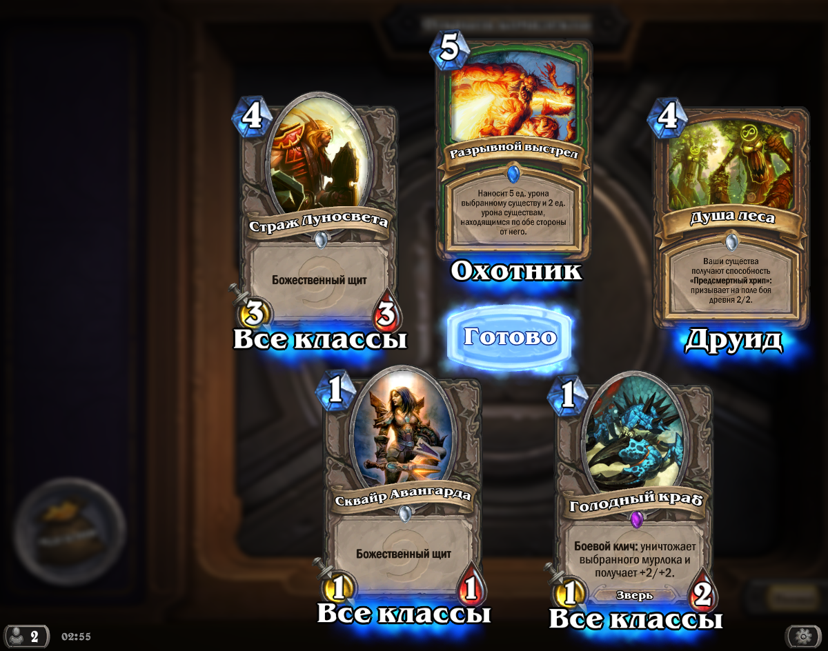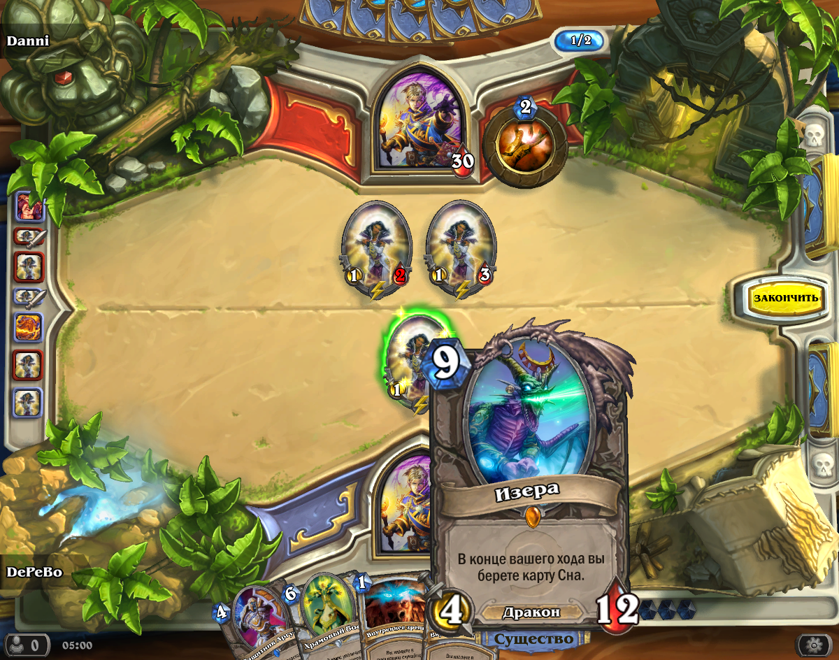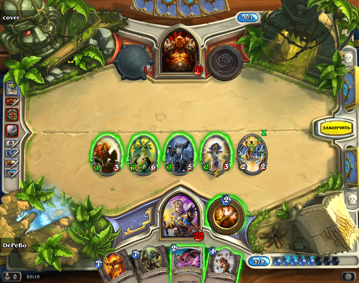 Осваиваю приста)) т.к. дали задание одержать 2 победы жрецом или чернокнижником. Нанёс за 1 ход в первой же игре 21 урон. p.s. прикольно им играть.