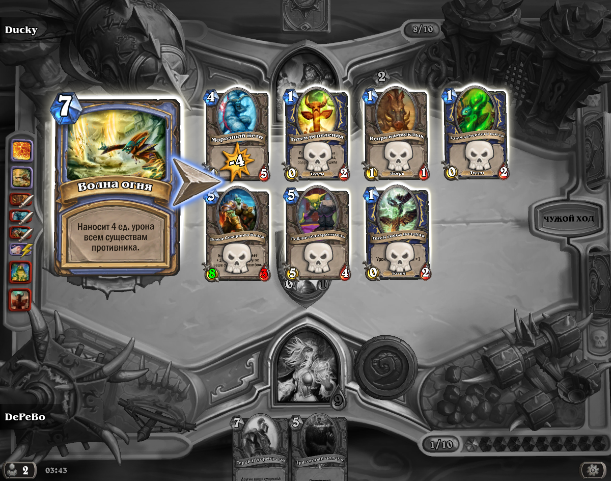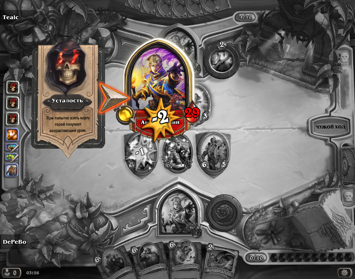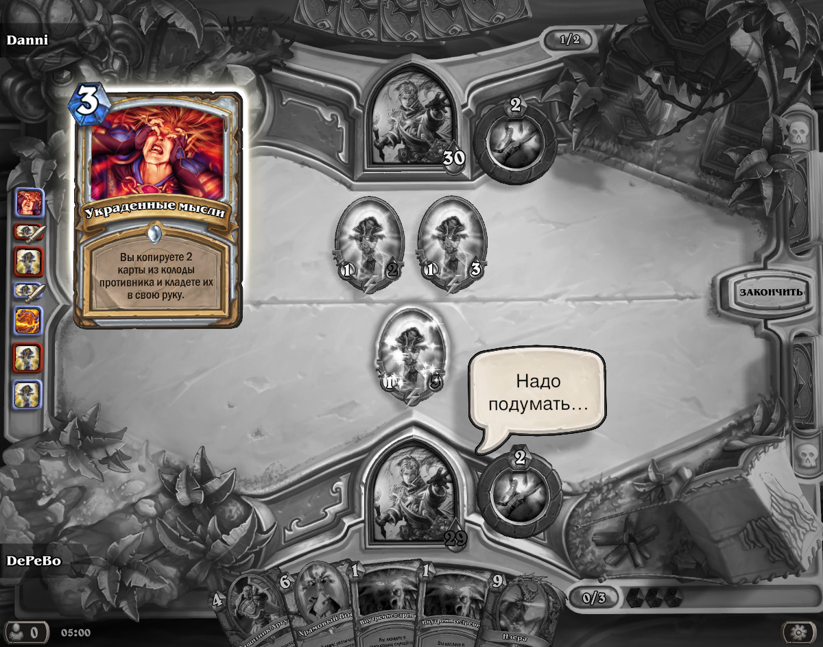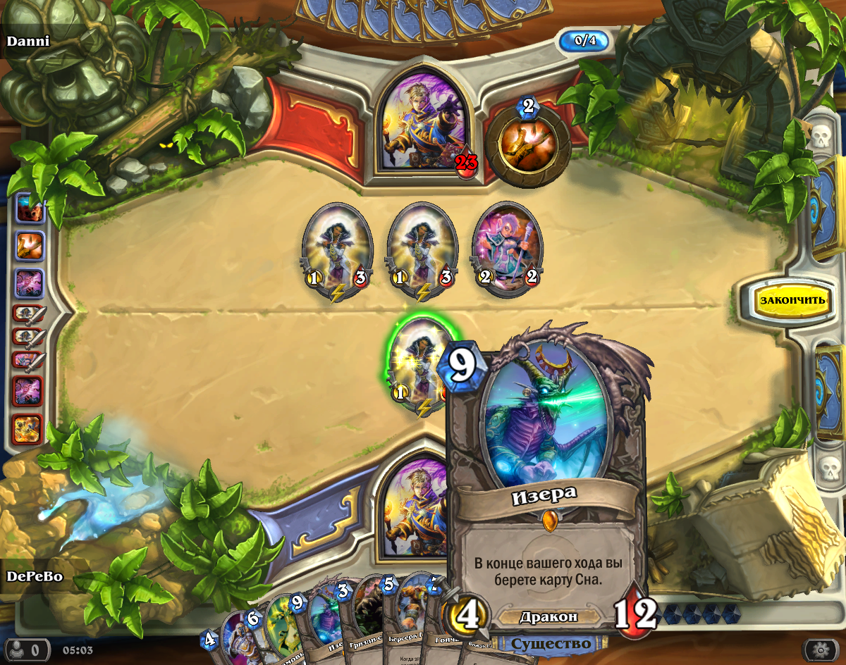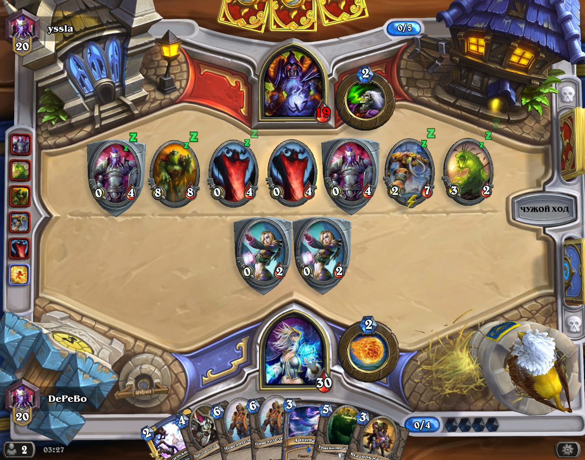 Осваиваю приста)) т.к. дали задание одержать 2 победы жрецом или чернокнижником. Нанёс за 1 ход в первой же игре 21 урон. p.s. прикольно им играть.