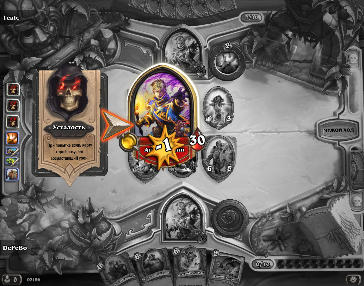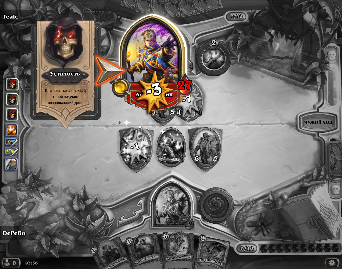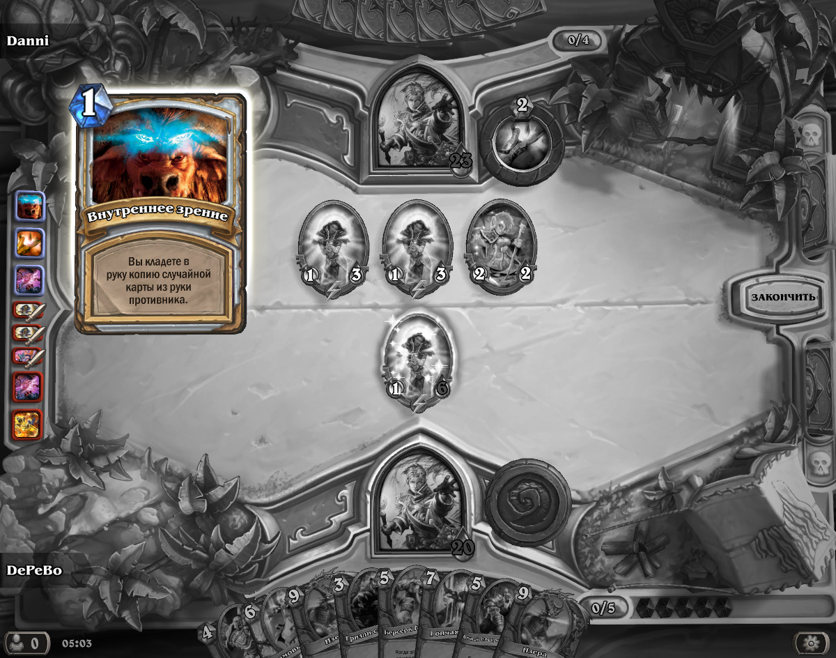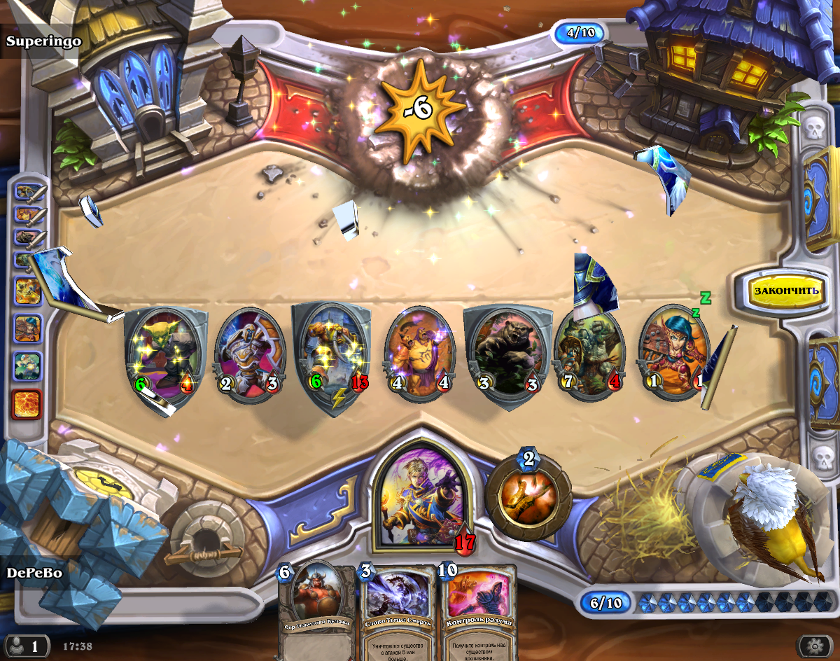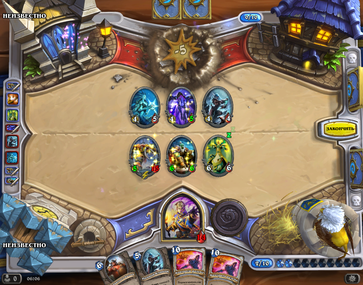 Осваиваю приста)) т.к. дали задание одержать 2 победы жрецом или чернокнижником. Нанёс за 1 ход в первой же игре 21 урон. p.s. прикольно им играть.