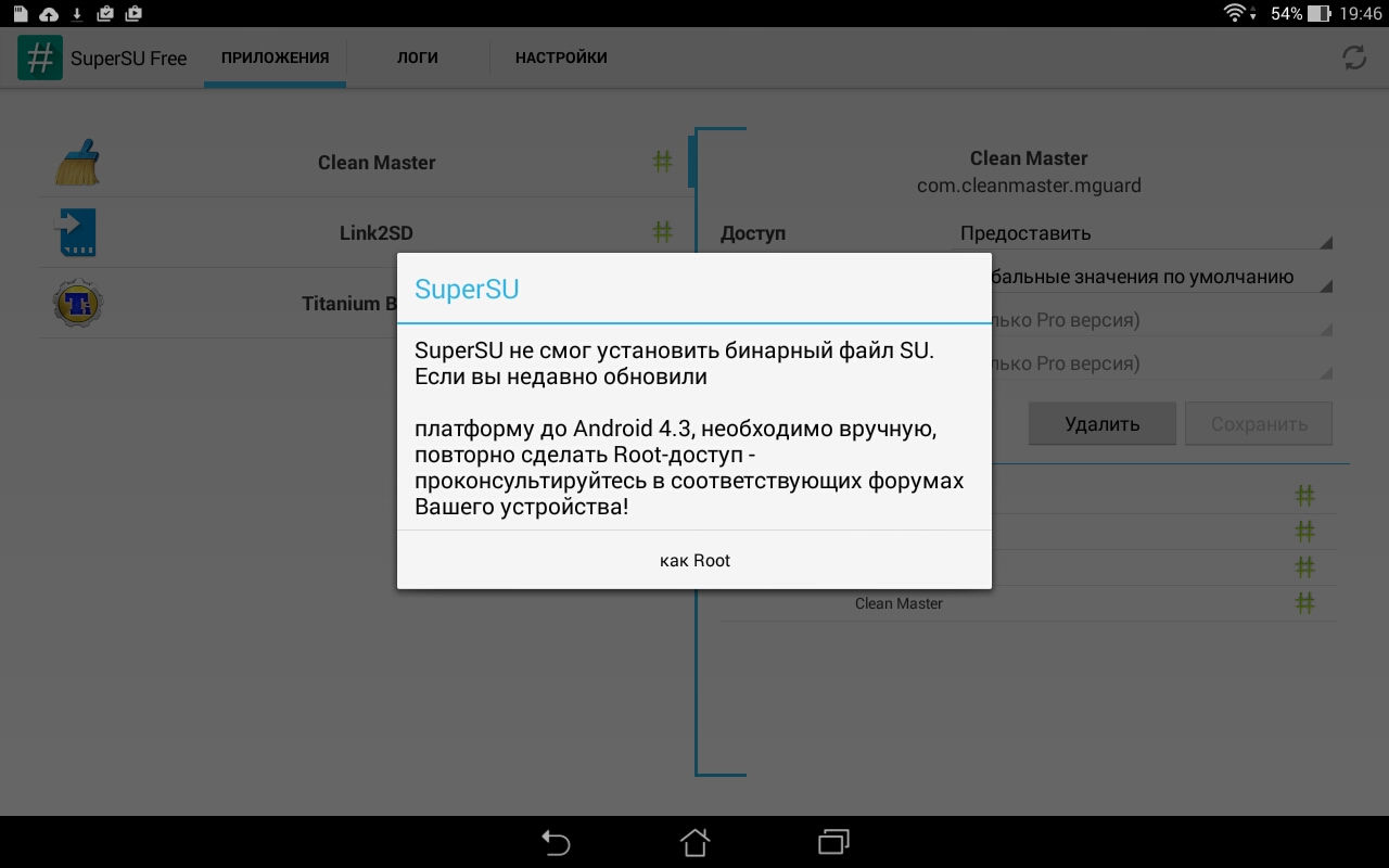 Link2sd работает, а Clean master сначала пишет, что предоставлены, а потом, когда пытаюсь удалить приложения из автозагрузки, грит Ошибка предоставления.