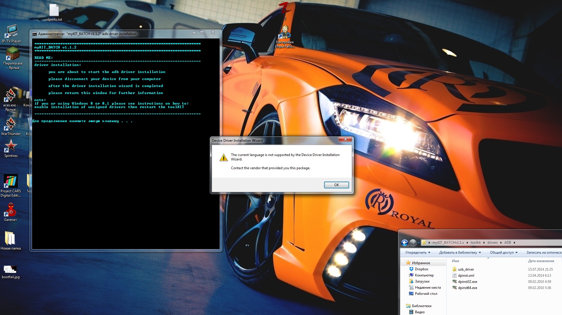 Вот что пишет при установке ABD драйвера.