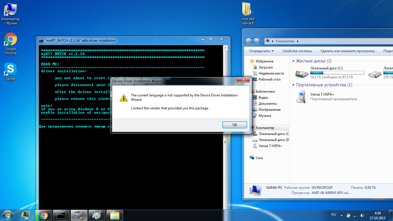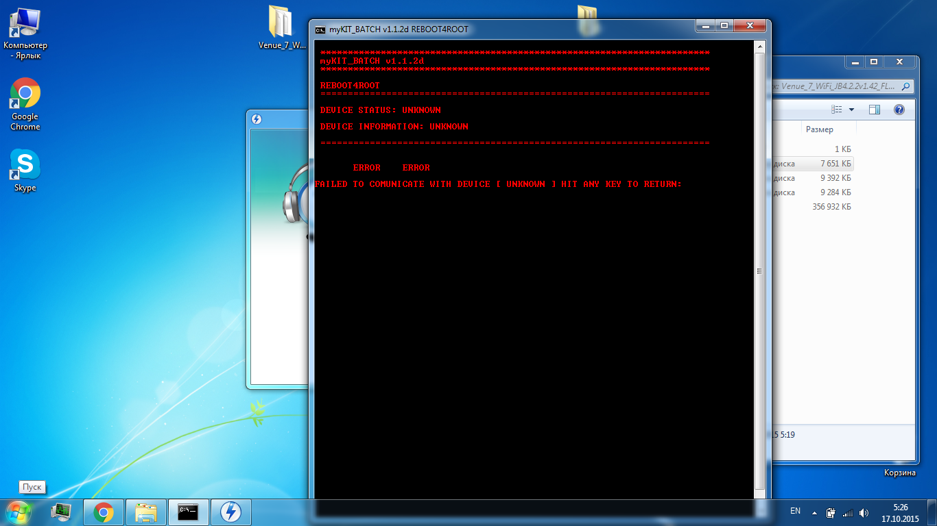 Незнаю почему но выдаёт постоянно ошибку! Дрова стали хорошо, отладка включена. Уже столько способов перепробовал для получения рута ничего не пробивает этот планшет!?