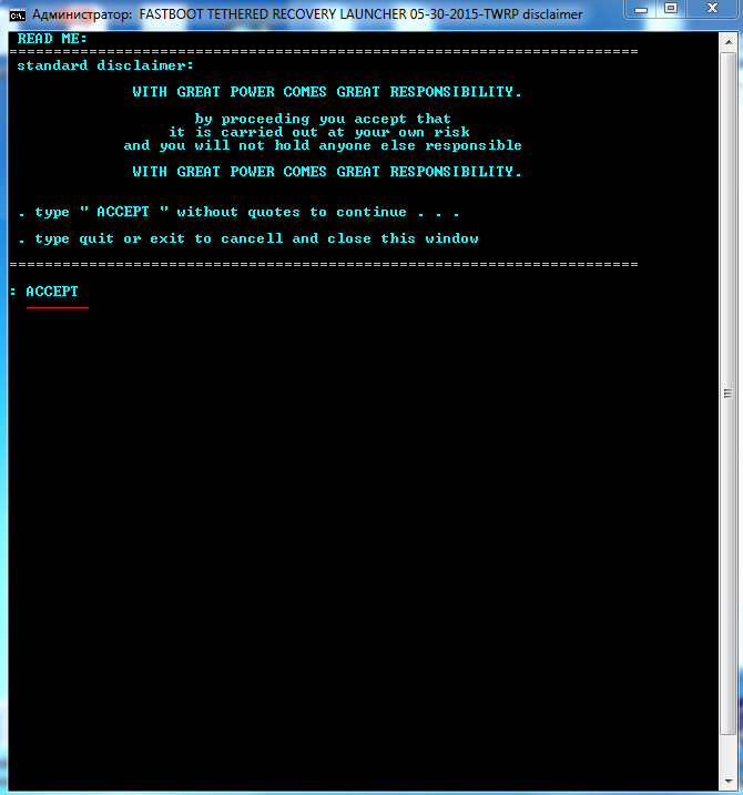 Если на загруженной системе не срабатывает, ввести планшет в режим Droitboot на ОС 4.4(на выключенном планшете нажать одновременно кнопку питания и громкость (+) вверх до вибро,затем отпустить) затем,когда планшет загрузится в режим Droidboot, подключить к ПК и повторить запуск launcher.bat.