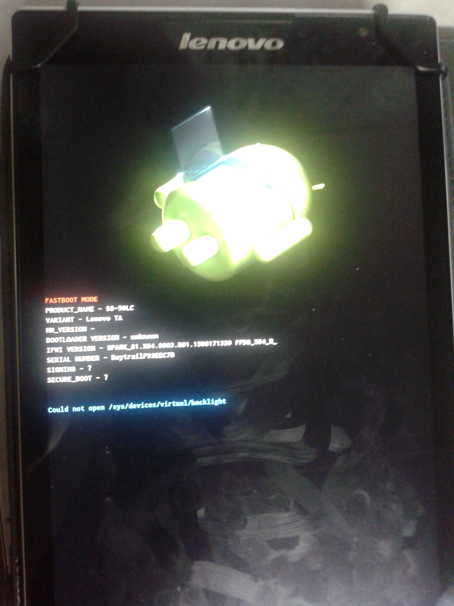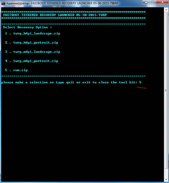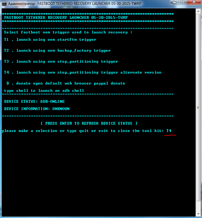 Но ОС 5.0 вводить в режим Fastboot mode - Normal Boot (на выключенном планшете нажать одновременно кнопку питания и громкость(-) вниз до вибро, затем отпустить),подключить к ПК и повторить запуск launcher.bat.