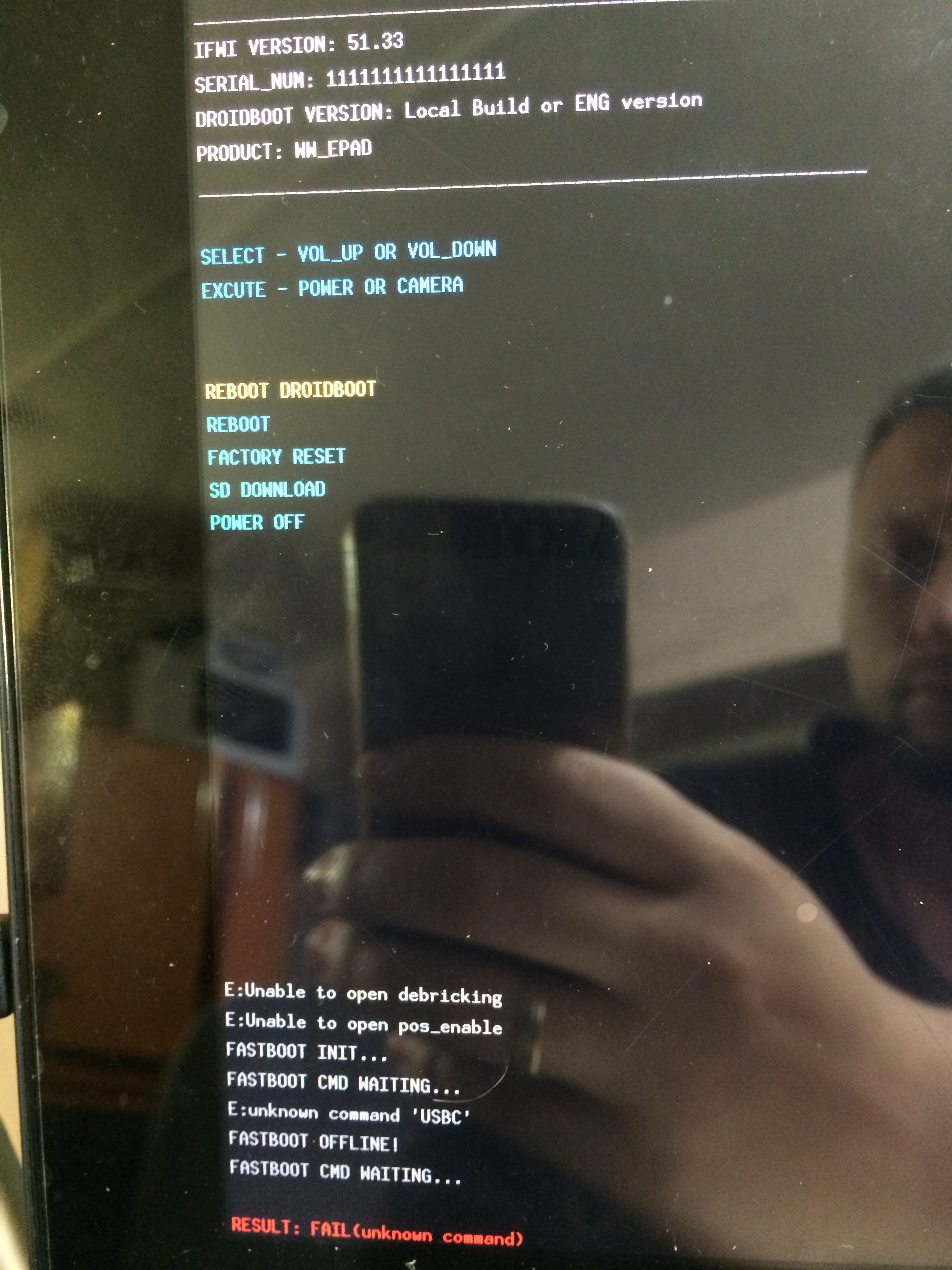 memo pad fhd 10 wi-fi me302c висит на лого через fastboot 3-4 прошивок пробывал короче -ошибка flashtool не поддержываеть мой модел,через droidboot sd download щееться только WW_ME302C-V5.0.9-0-ota-user.zip,но все ровно не включайка,так что надежда на тебя,спасибо за ранее ,буду ждать