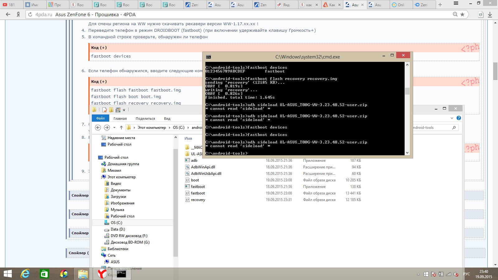 скачал офф рековери и записал. дошел до момента когда нужно прописать adb sideload .... но в окне пишет что не может прочитать sideload, хоть и на телефоне пишет чтоб я ввел комманду adb sideload ....