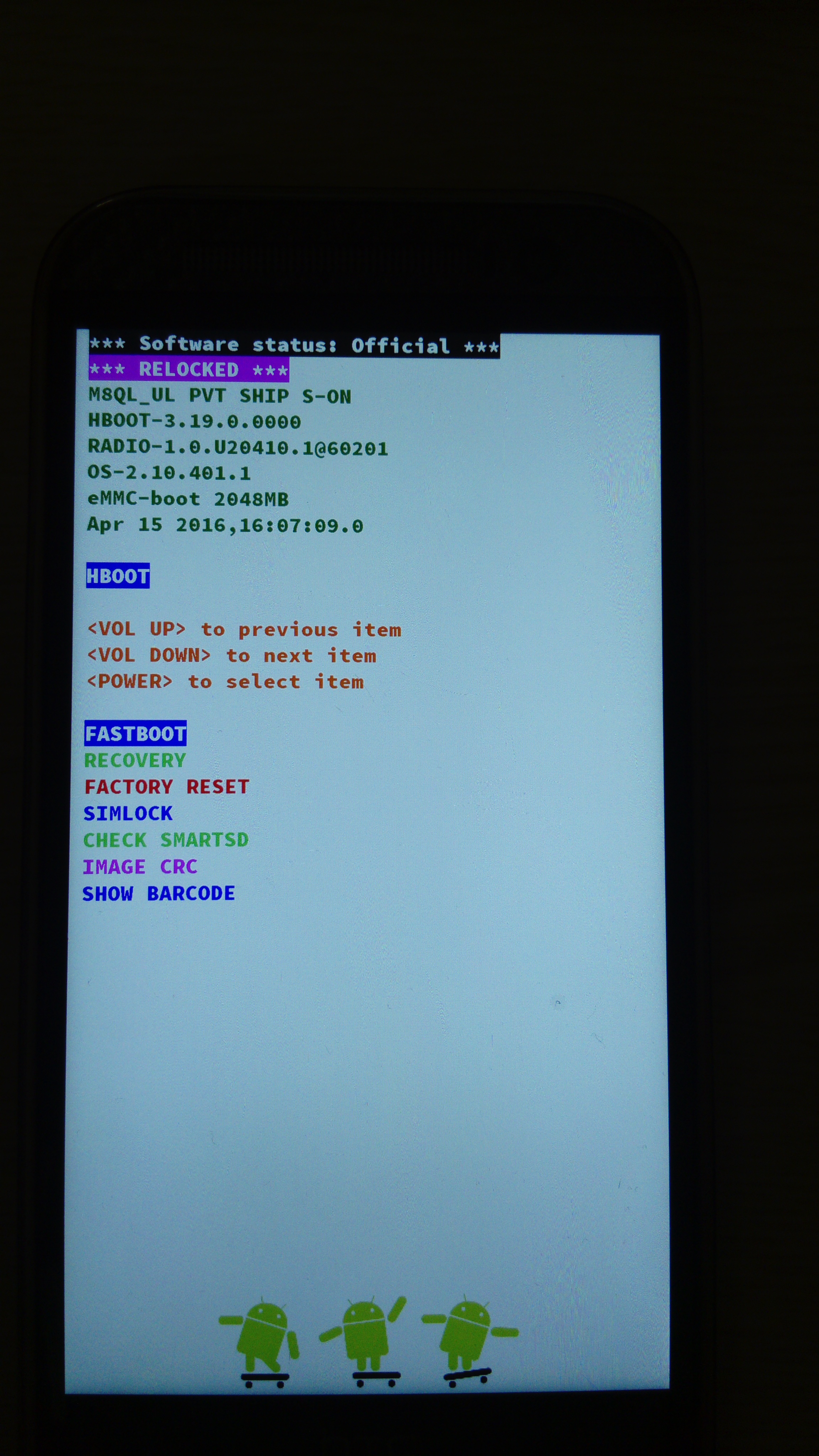 В бут меню все заходит recovery у меня стандартное вроде, хотя я помню, что у меня даже стандартного не было оно появилось у меня после попытки прошить его через RUU, версия android у меня была 6.0.1