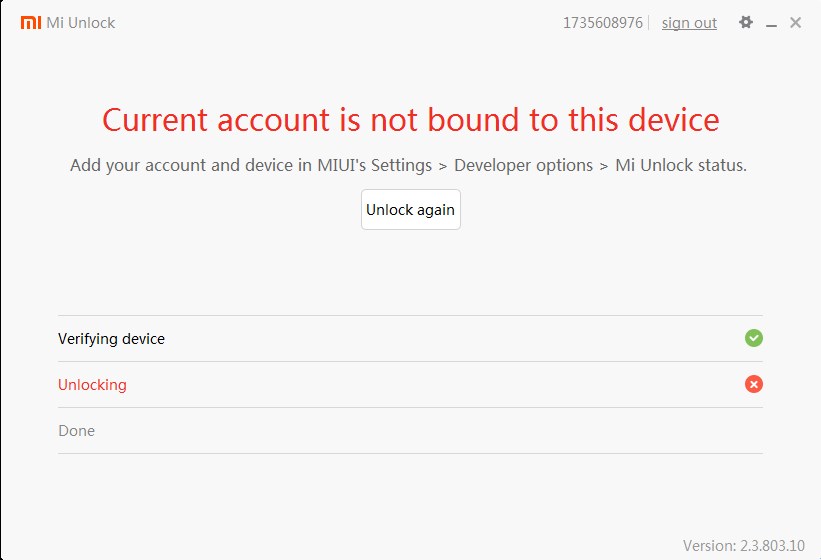 Здравствуйте! 9.10.2017 у меня установилось уже почти МIUI 9 (не стабильная) с офиц. сайта, но в конце потребовал логин и пароль, а я ДУРА пароль старого телефона ввела, и в результате у меня смарт. заблокирован на экране пишет "войдите в mi аккаунт" и после ввода уже правильного логина и пароля ругается "ошибка авторизации неверное имя пользователя". Но я свободно зашла в Mi аккаунт на компе (уже потом вспомнив этот злополучный пароль и логин) и успешно отправила заявку на разблокировку, и пришел файл разблокир. Но ни в Mi Unlock ни в Mi MiPCSuite аппарат не может распознать т.е. разлогиниться и про 72 часа ожидания уведомлений не было, хотя драйвер ABD устанавливала на комп. в начале, как быть уже 2 суток мучаюсь.