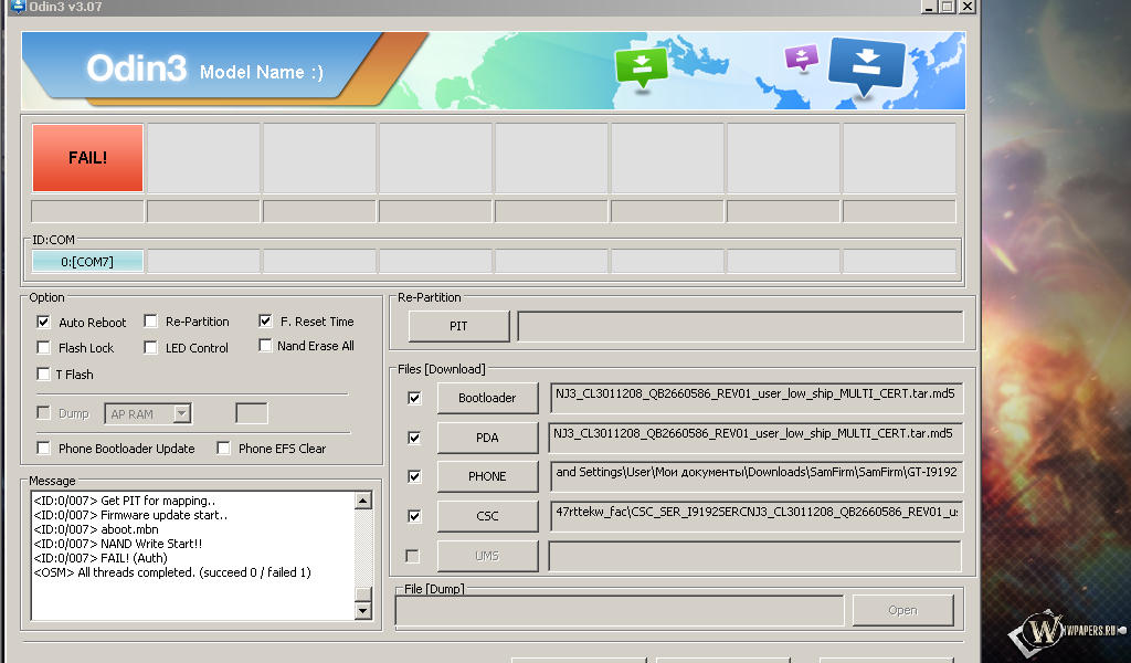 Здравствуйте, у меня samsung s4 mini duos gt-i9192. Через приложение на телефоне пробовал установить кастомное рекавери, не прошилось. при запуске аппарата заходит в odin mode с надписью в углу Could not do normal boot. далее, загружаю телефон в режим download mode, через один (в 3.07) шью офф прошивку(многофайловую). на экране телефона появляются 2 сообщения secure check fail : PIT , secure check fail : aboot. возможно ли мне прошиться? или это уже "кирпич"?. заранее спасибо.